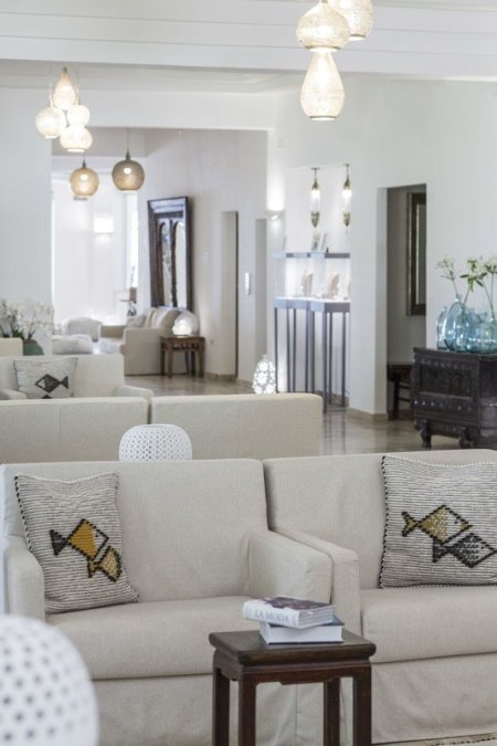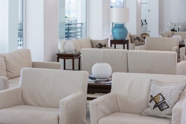 Junior Suite Sea View (33-43 м2): 10-20 м2 терраса, номера расположены в центральном корпусе с видом на море. Гостиная зона с софой разделена со спальной зоной ширмой. В спальной зоне расположена двуспальная кровать; максимальное размещение 2 взр. и 1 ребенок