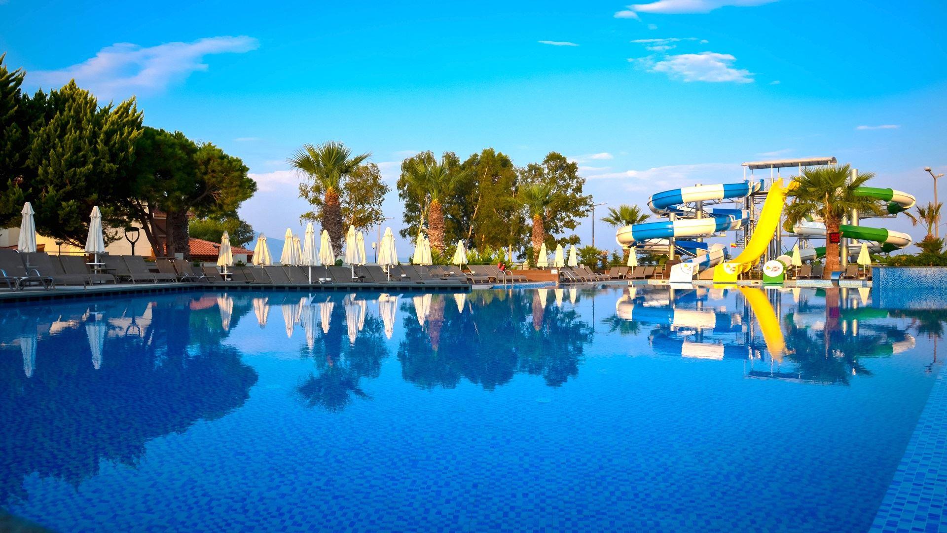 - открытый бассейн с 3 горками, 180 кв.м
