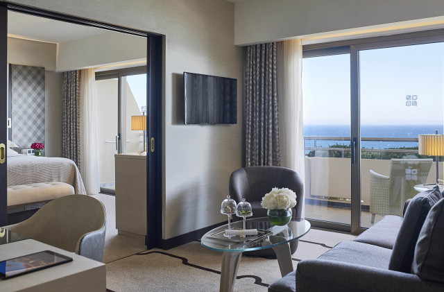Junior Family Suite (55 м2), Family Suite (57 м2): обе категорииномеров с видом на море; расположены в основном здании; двухкомнатные: гостиная и спальня, возможно совмещение со стандартными номерами с видом на море; максимальное размещение 3 взр. или 2 взр. и 2 ребенка