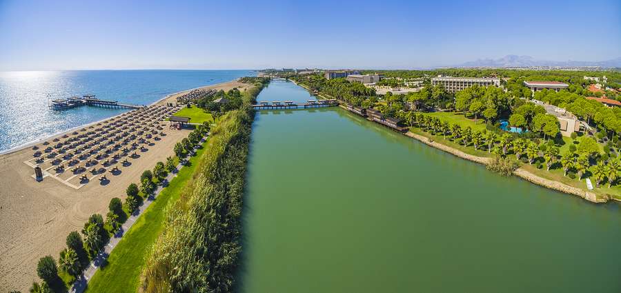 Gloria Serenity Resort 5* находится на средиземноморском побережье Анталии в 7 км от Белека у реки Аджису в окружении хвойного леса.