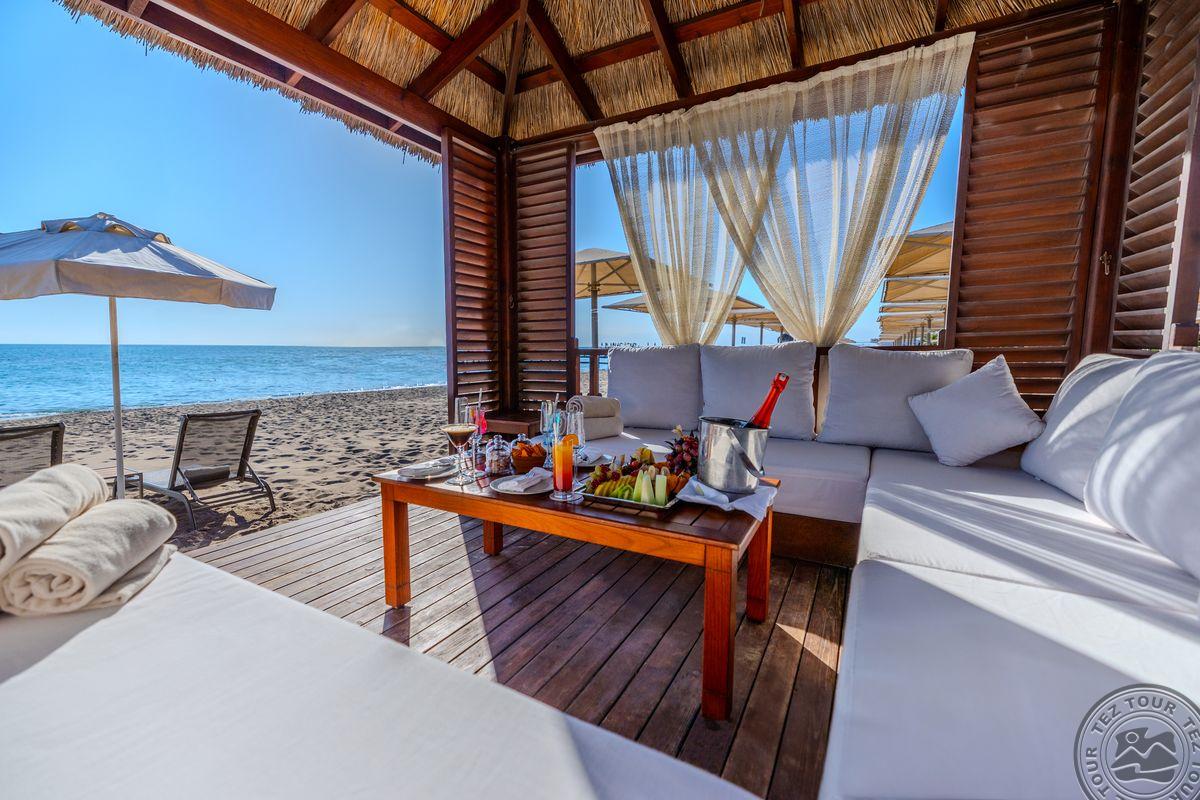 Пляж:> шатры на пляже платно на пляже зонтики, шезлонги: бесплатно пирс на пляже полотенца: бесплатно бар на пляже: бесплатно собственный (присвоен Голубой флаг) песчано-галечный