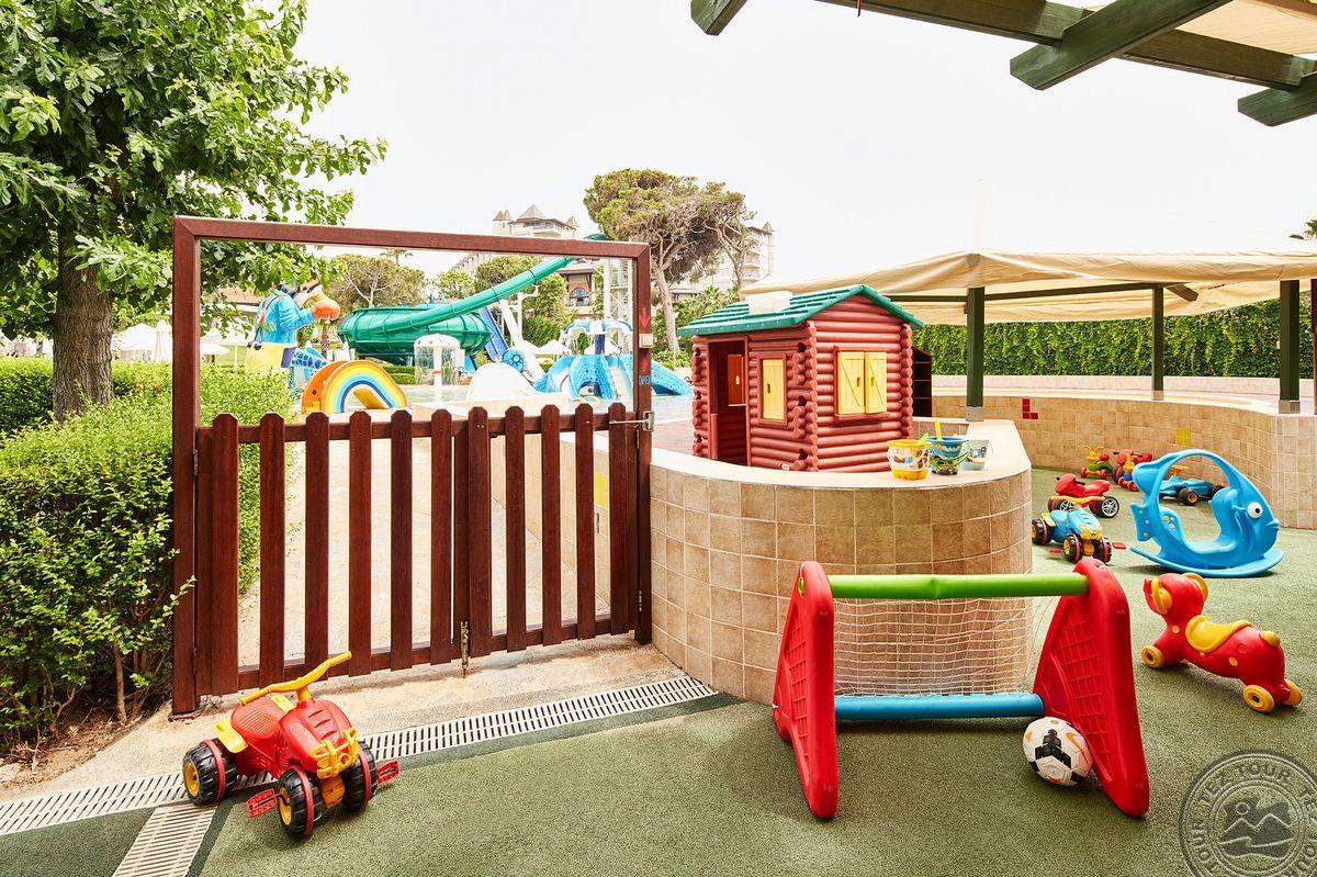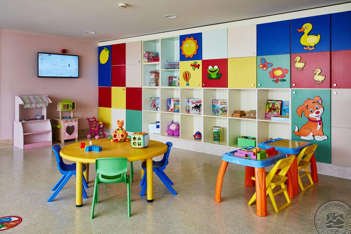 Детям:> детский клуб (4-12 лет, с кухней) услуги няни: платно детская площадка клуб для подростков (Gogi Teenage Club 13-17 лет - в летний период) детский халат (опционально) детская дискотека детские бассейны: 4 (открытые, Select Villa Pool только для гостей King Suite и Select Villa, 2 с подогревом в зависимости от погодных условий) спортивная академия бесплатно (групповые занятия гимнастикой, плаванием, футболом) детский буфет (в летней концепции) крытый бассейн (с подогревом в зависимости от погодных условий)
