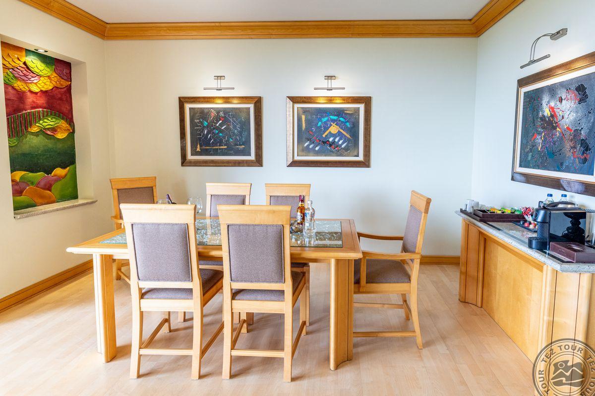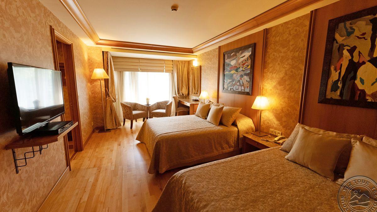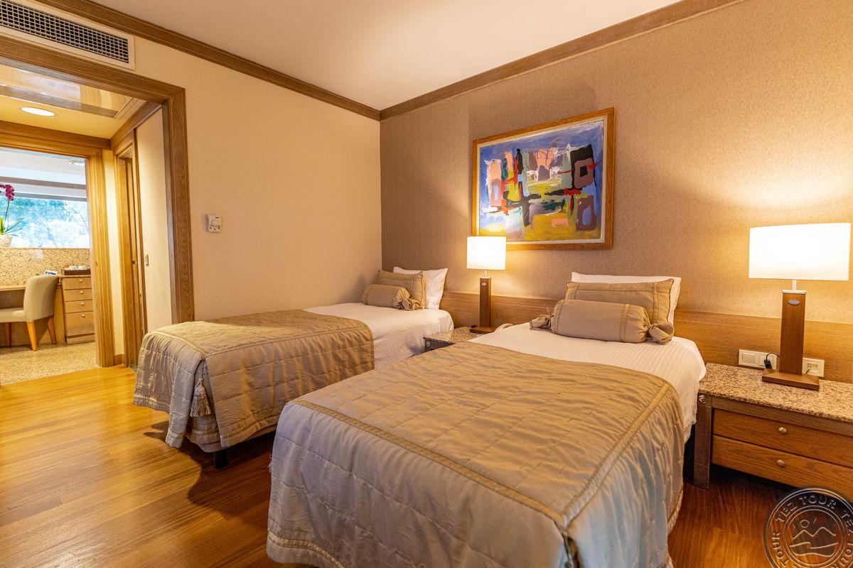 8 двухкомнатных deluxe suite (2 спальни с дверью и гостиной группой,2 ванные: одна с душем, другая с джакузи и душем, 2 ТВ, макс. 4+1 чел., 75 м2);