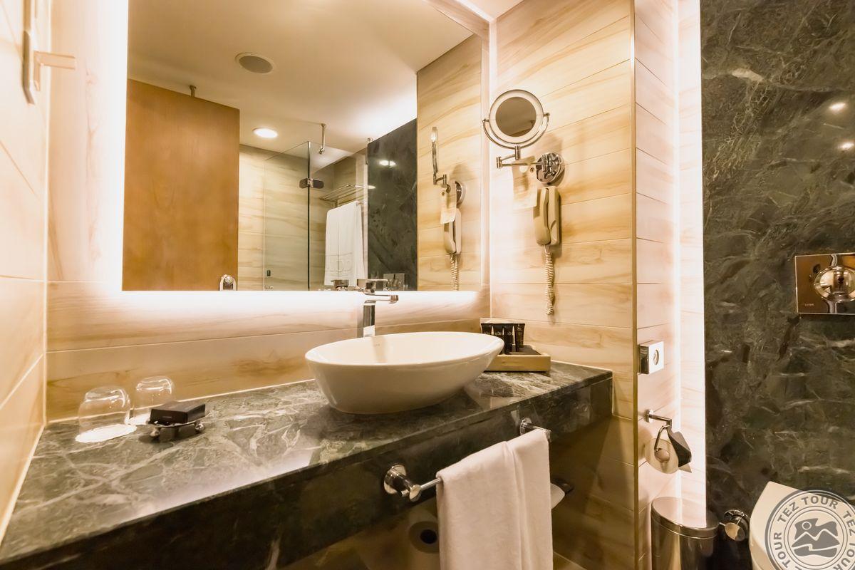 Номер:> сейф: в номере, бесплатно уборка номера: ежедневно кофемашина (Schiller - в Suite, De-luxe Suite, King Suite, Villa) смена белья: через день утюг: по запросу халат косметические принадлежности весы электрический чайник зеркало для макияжа телевизор: есть выбор подушек тапочки фен: есть кондиционер: есть мини-бар бесплатно (прохладительные и алкогольные напитки - ежедневно, 1 раз в день) смена полотенец: через день room service: круглосуточно, платно балкон или терраса гладильная доска: по запросу телефон набор для приготовления чая/кофе Интернет: Wi-Fi, бесплатно (высокоскоростной Wi-Fi - платно)