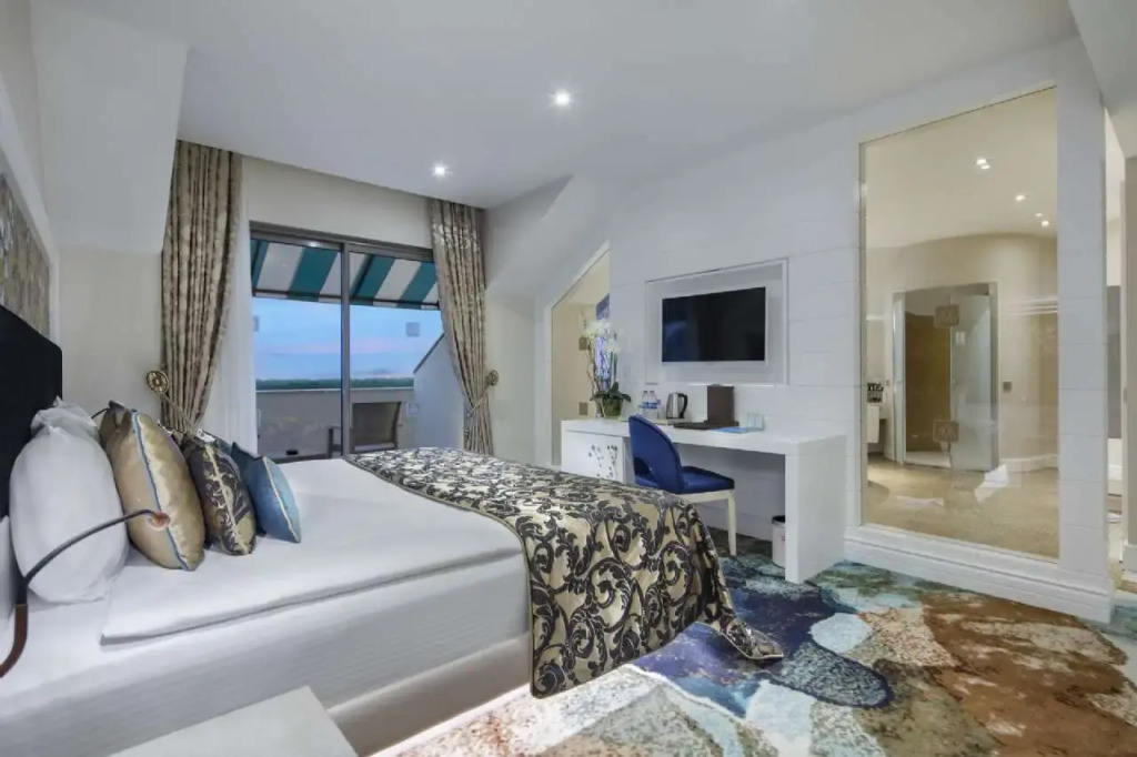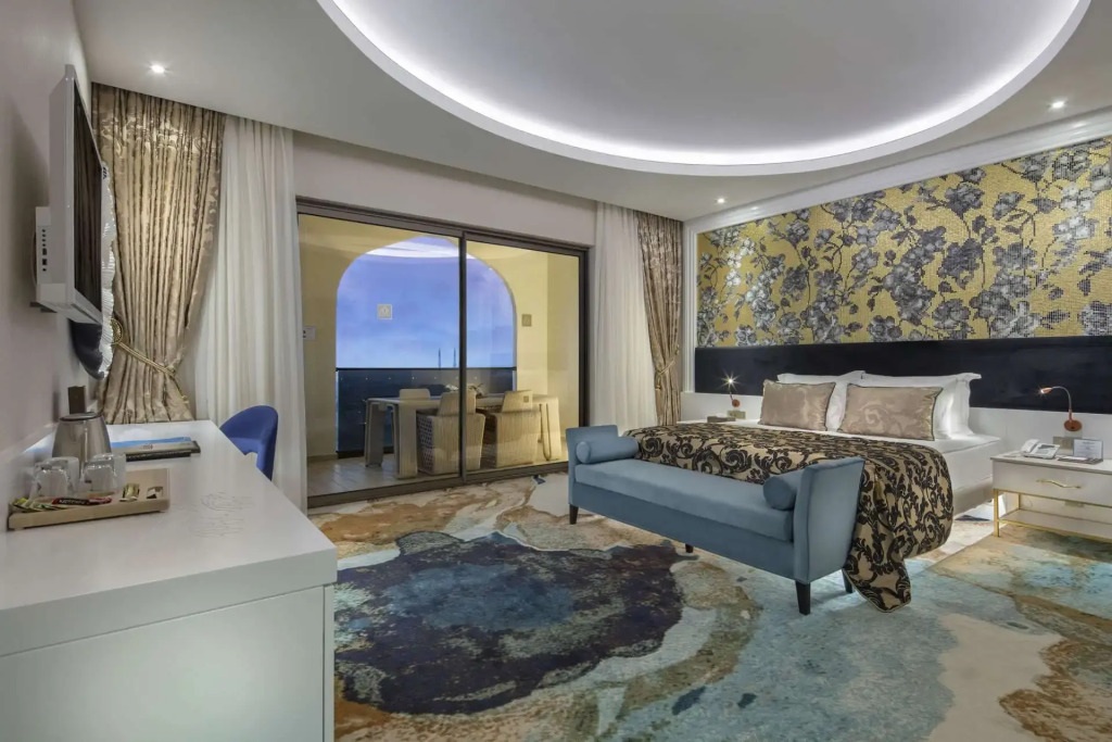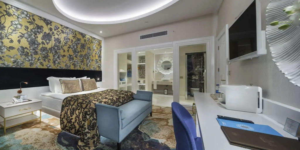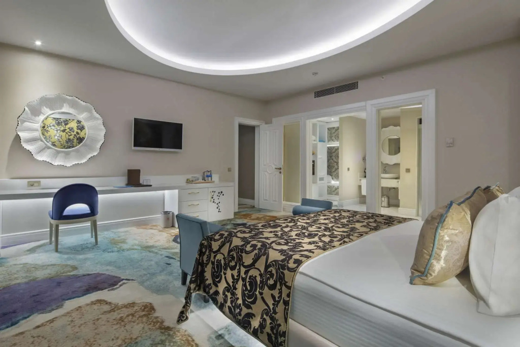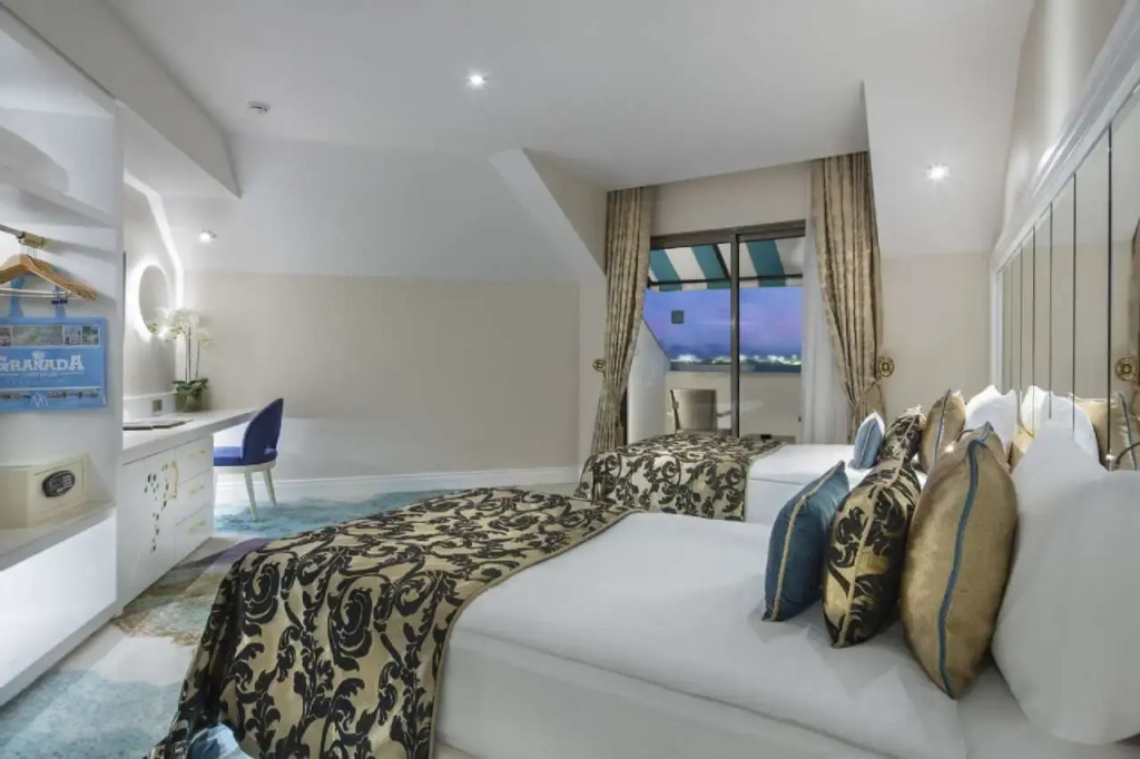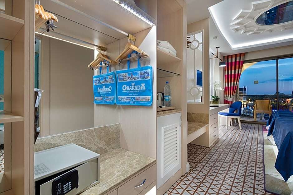 Описание номеров Granada Luxury Belek 5*:В номере вас будут ждать душ, мини-бар, халат и тапочки. Оснащение зависит от выбранной категории номера.