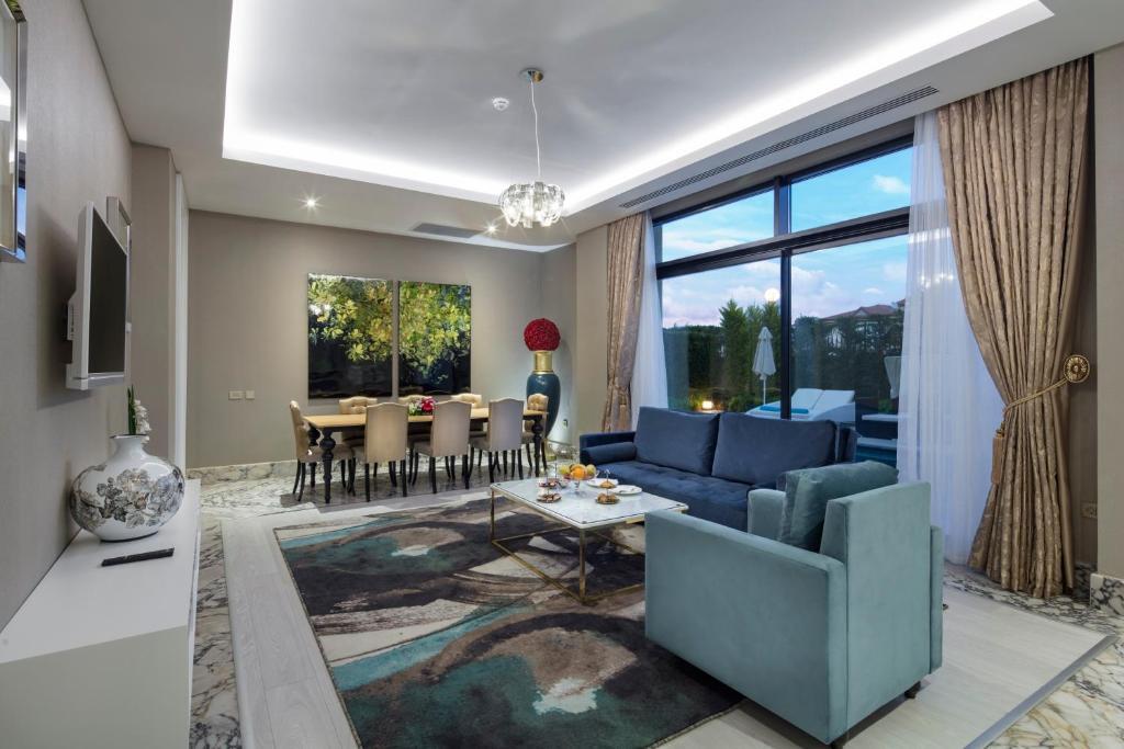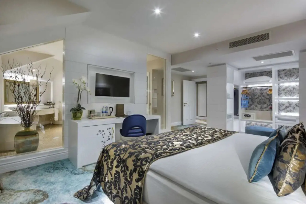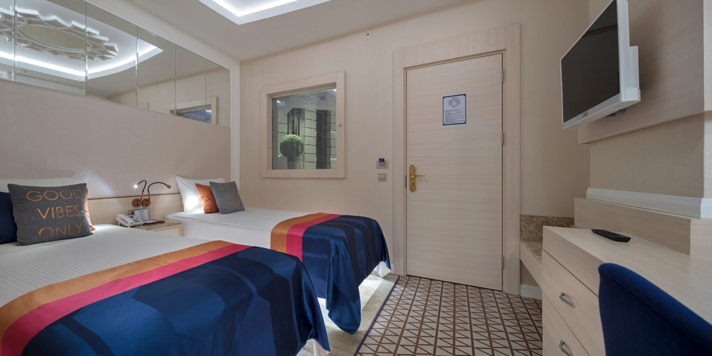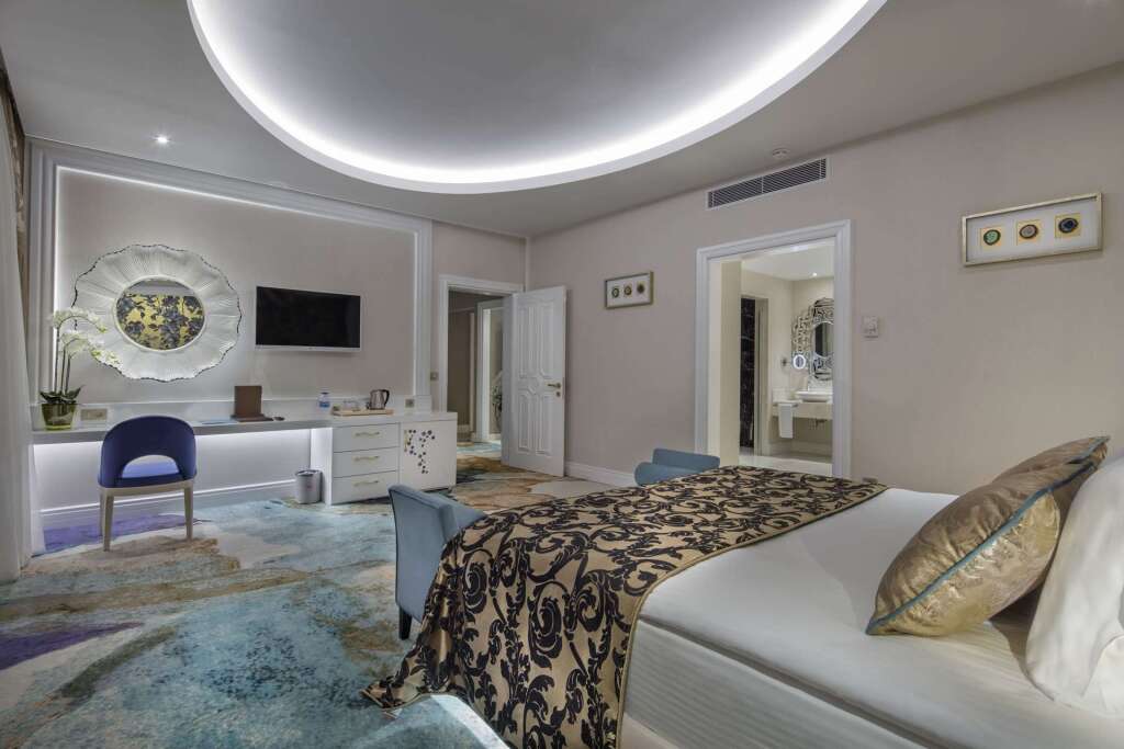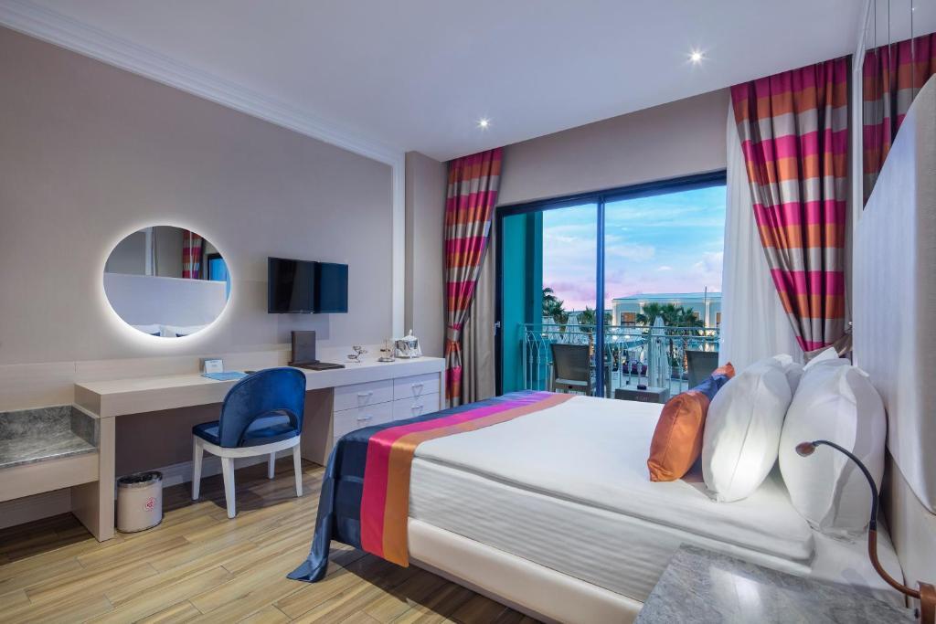Описание номеров Granada Luxury Belek 5*:В номере вас будут ждать душ, мини-бар, халат и тапочки. Оснащение зависит от выбранной категории номера.