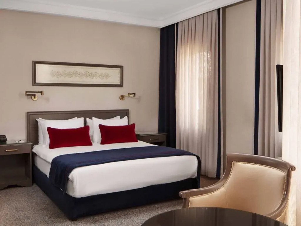 В отеле:По утрам в ресторане Sultan гостям сервируют завтрак, а в течение дня можно попробовать местные деликатесы. В баре Yelken предлагают коктейли и местное пиво.; Отель располагает открытым и закрытым бассейнами, оздоровительным клубом с фитнес-центром и парной. Гости также могут заказать сеансы массажа или посетить салон красоты.; В зонах общего доступа предоставляется бесплатный беспроводной доступ в Интернет. Для гостей, путешествующих на автомобиле, предусмотрена бесплатная парковка.