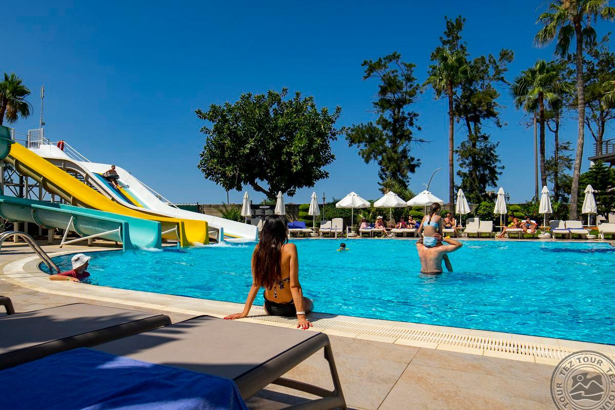Спорт и развлечения:> бочче бесплатно водное поло бесплатно сауна (10:00-12:00/16:00-18:00 - бесплатно) дартс бесплатно бильярд платно водные виды спорта платно массаж платно турецкая баня (хаммам) (10:00-12:00/16:00-18:00 бесплатно ) тренажерный зал бесплатно волейбол на пляже бесплатно анимация бесплатно тематические вечеринки бесплатно (турецкая ночь в определенные дни) настольный теннис бесплатно аквааэробика бесплатно