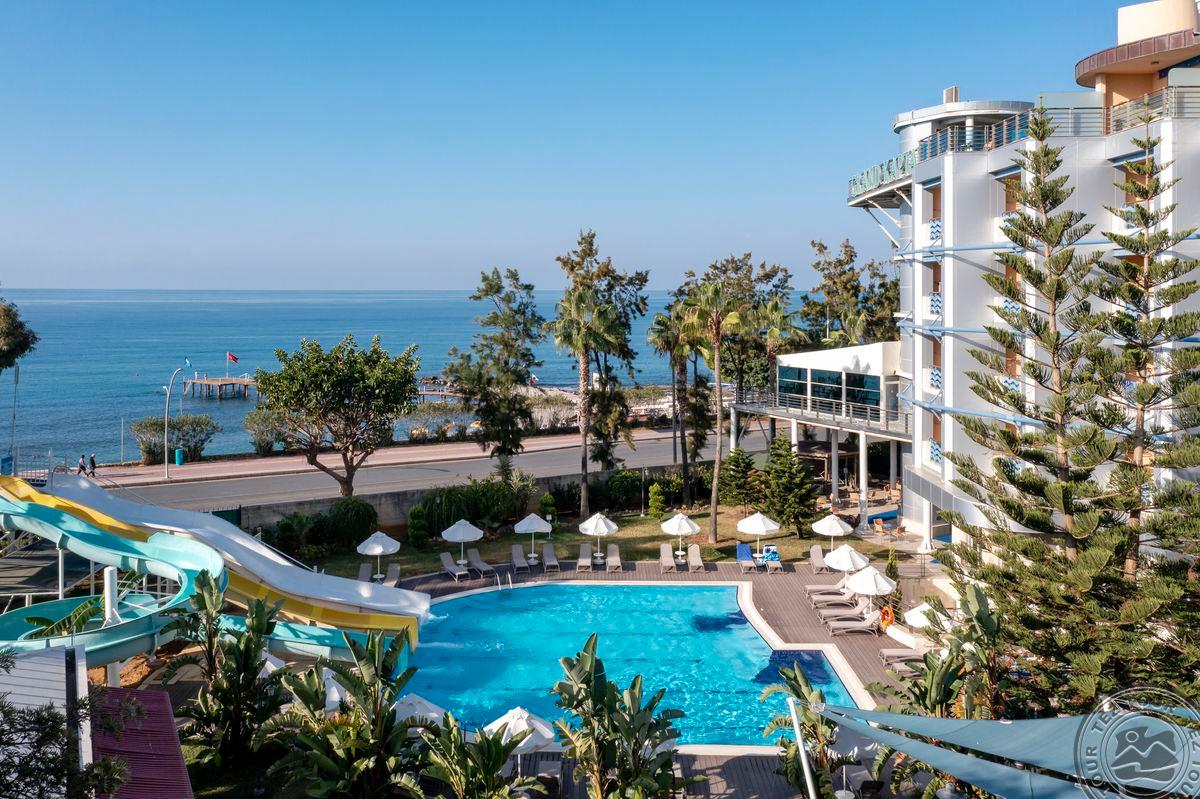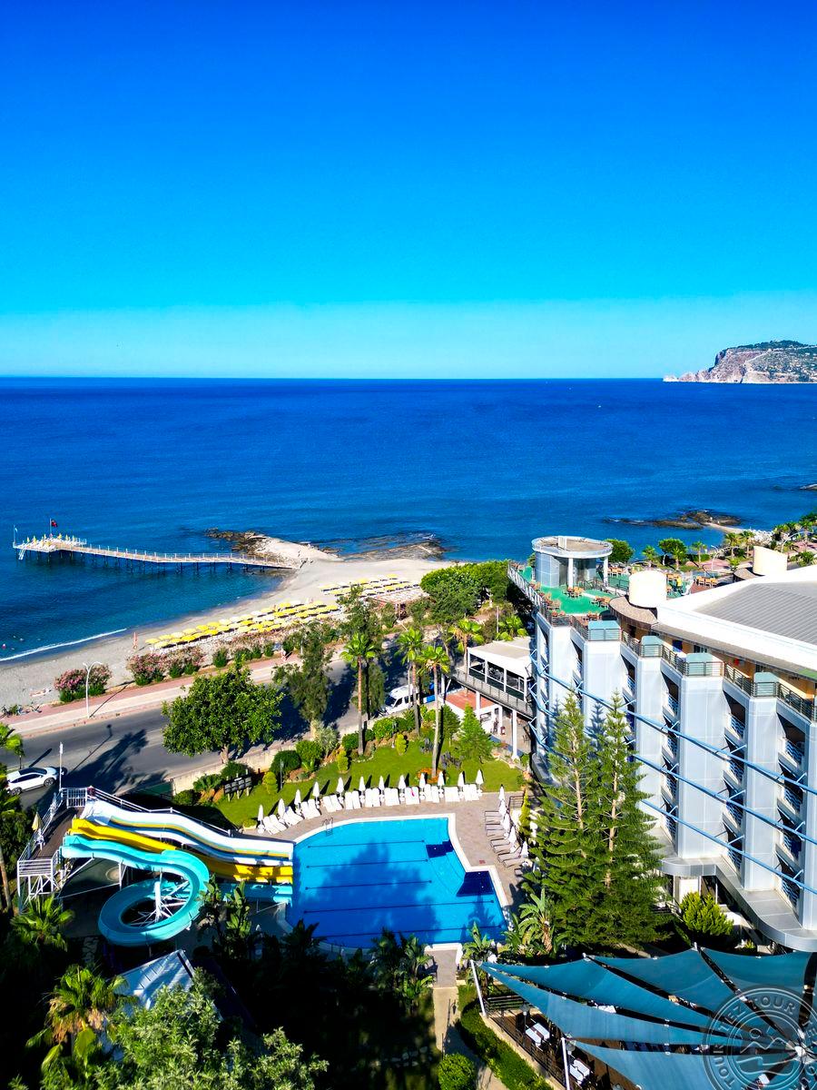 - Расположение: в 131 км от аэропорта г. Анталья,в 4км от г. Алания, на берегу моря (есть подземный переход). Отель: Построен в 1991 году, общая площадь 14 000 м2