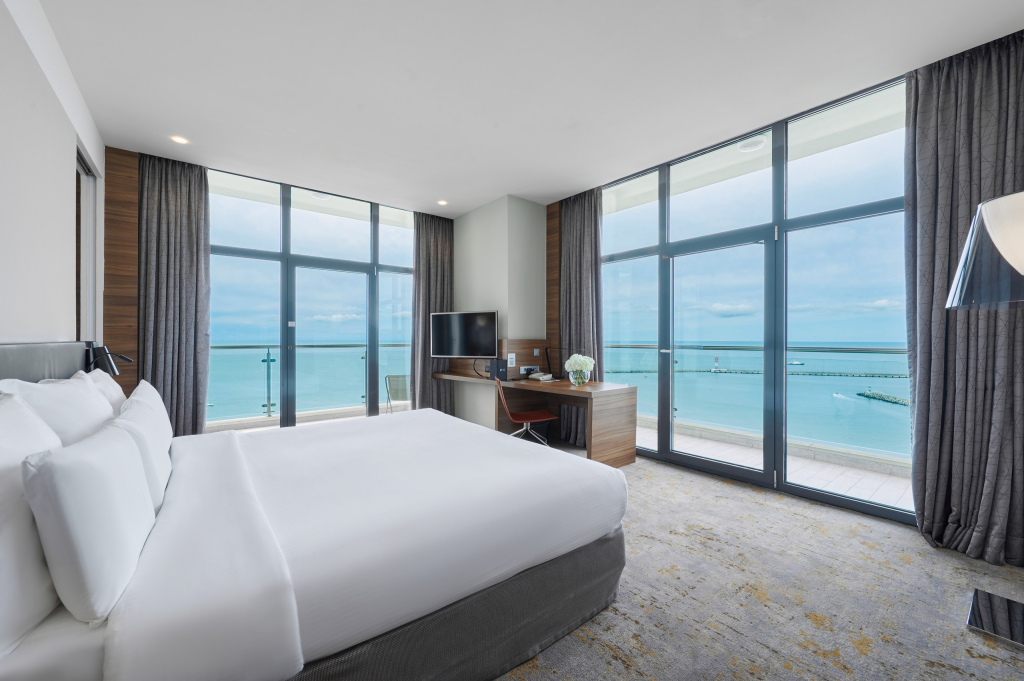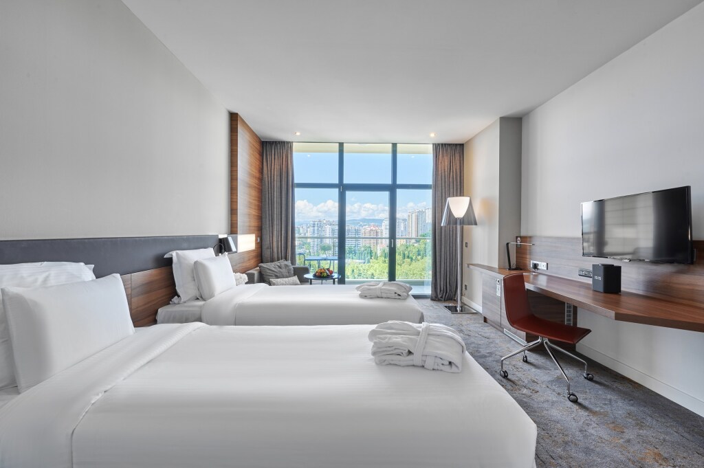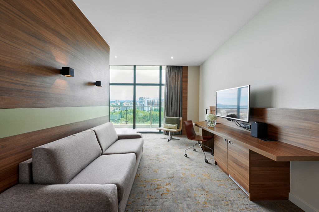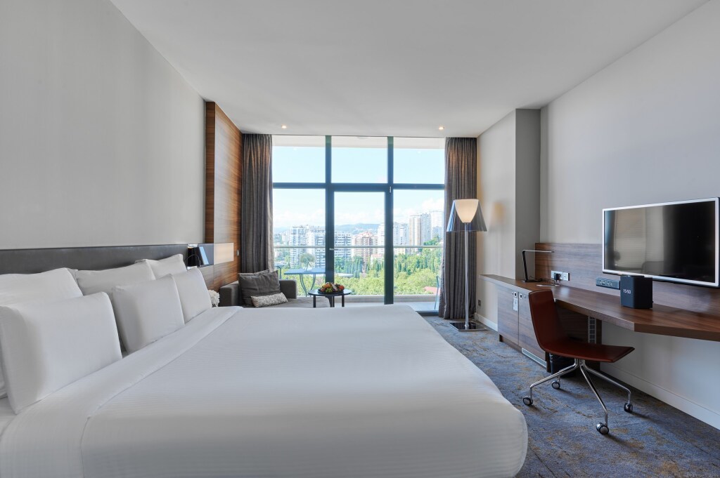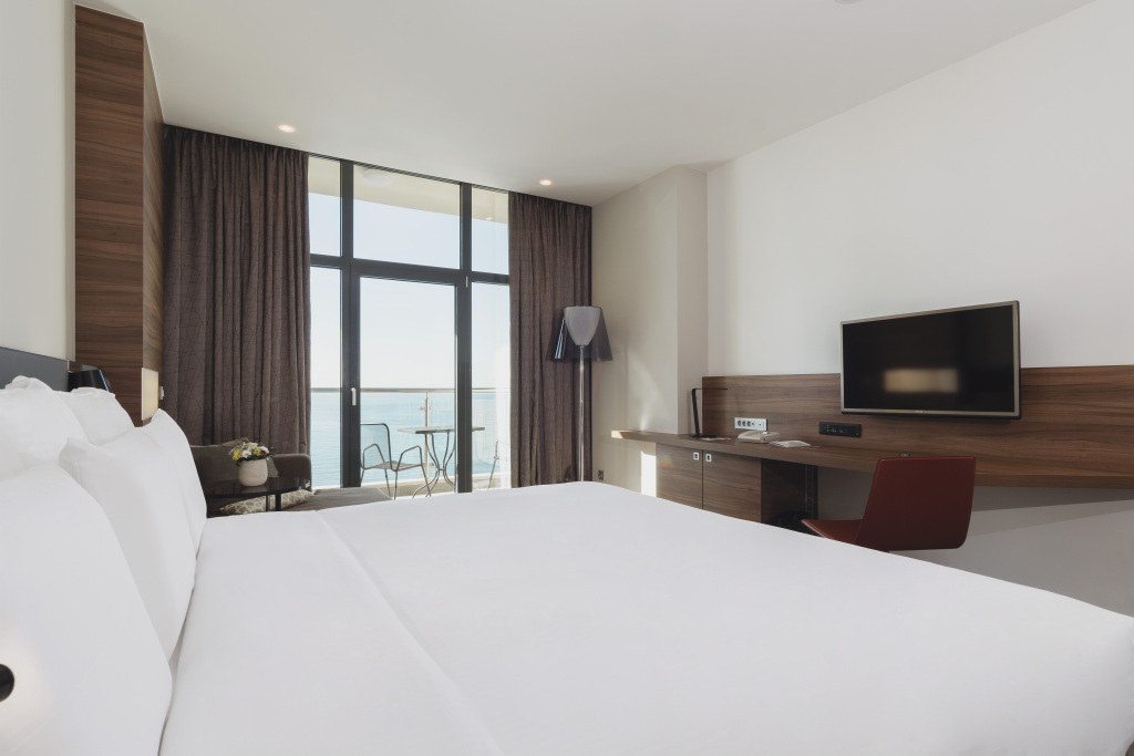 Описание номеров Grand Karat Sochi 5*:Отель «Pullman Sochi Centre» предлагает гостям 151 номер различных категорий, с панорамой Чёрного моря из каждого номера.; Лаундж зона Sea View Lounge — комплимент от отеля для гостей, проживающих в номерах категорий «Представительский» и во всех видах люксов. В лаундж зоне с террасой с видом на море круглосуточно сервируются б/а и алкогольные напитки, свежие фрукты, печенье, горячие закуски.