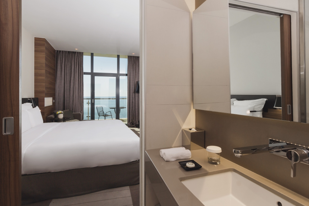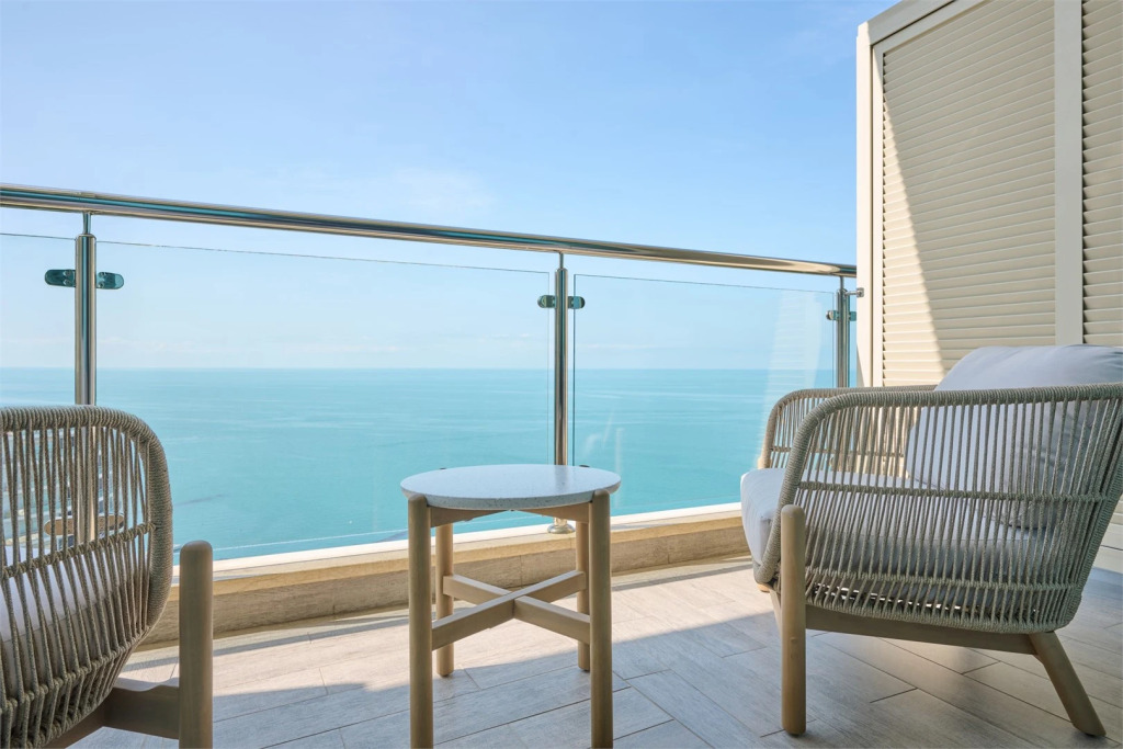 В отеле:На 16 этаже отеля находится крытый бассейн с панорамным видом на море, которым гости могут воспользоваться независимо от погодных условий, круглый год. Размер бассейна 17х7 м, глубина 1.4 м, вода пресная, подогревается до температуры 28 градусов. К услугам гостей также предлагается сауна, хаммам и тренажёрный зал с видом на море.; Рядом с отелем расположены два открытых бассейна: взрослый бассейн и детский бассейн с фонтаном и горкой. Открытые бассейны наполнены пресной водой температуры 28 градусов и функционируют в летнее время.; Фирменный пляж находится в шаговой доступности от отеля. Пляж оформлен растениями, уголками для отдыха и предлагает гостям всё необходимое для отдыха у моря: шезлонги, зонты, тентовые зоны, бунгало, диваны-коконы, комнаты для переодевания, душевые кабины, уборные комнаты, комфортабельные деревянные дорожки. За безопасностью гостей следят медсестра и спасатель. В 2022 году пляж получили статус «Голубой флаг», что означает его высокую безопасность, чистоту и экологичность.; Разнообразная кухня, обширное меню и вид на море будут ожидать гостей в ресторане для завтраков «Примула».; В ресторане с террасой Sel Marin можно попробовать блюда, приготовленные по рецептам средиземноморской кухни, и винную коллекцию Vinoteca by Pullman.; Для маленьких гостей ежедневно работает детская комната. В летнее время детям предлагается увлекательная программа детского клуба: подвижные игры на улице, развивающие занятия, соревнования и выступления для ребят возрастом 4-14 лет.; Заселение по загранпаспорту не осуществляется.