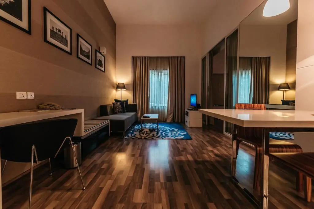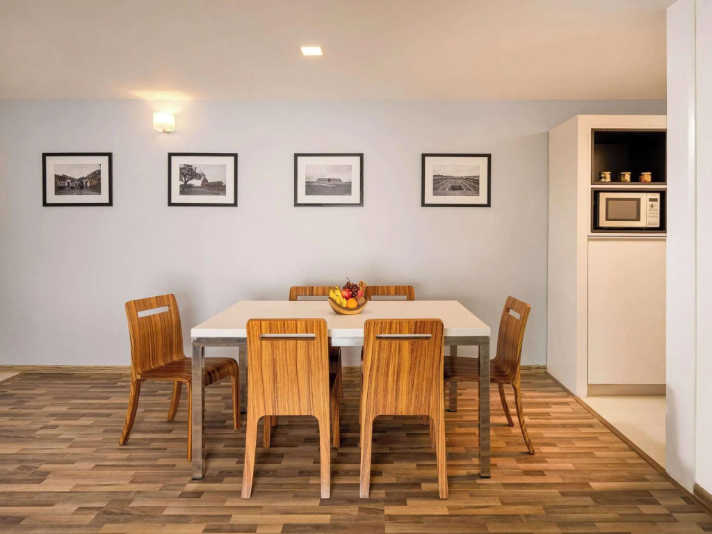 Описание номеров Grand Mercure Bangalore, An Accor Hotels Brand 5*:Всего 30 номеров – "Стандарт", "Делюкс", "Делюкс студио", апартаментов – в здании колониальных времен с традиционным индийским декором и старинной мебелью. Все номера – с балконами, ванными комнатами, кабельным телевидением, феном, телефоном, бесплатным Wi Fi и кондиционерами. Часть апартаментов не кондиционируема. Номера "Делюкс студио" оборудованы кухонным уголком, обеденной зоной. Все номера – с видом на сад.