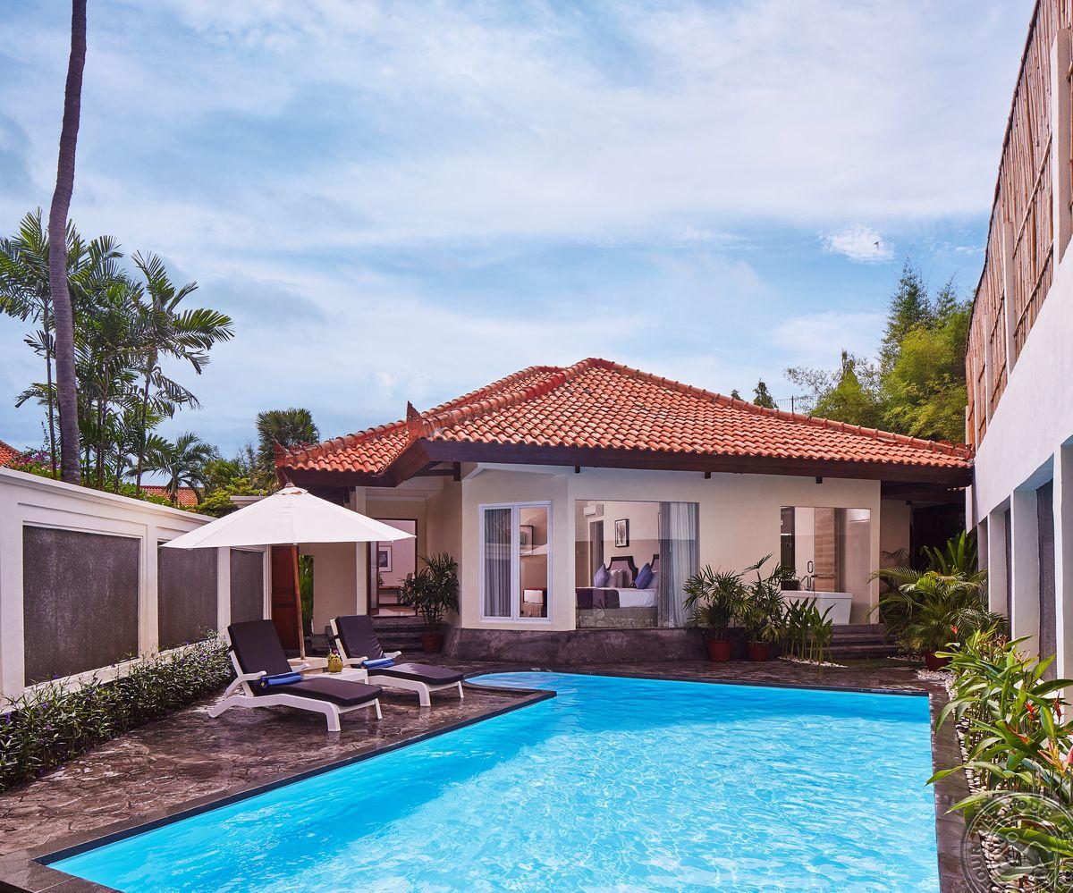 на курорте Танжунг-Беноа, в 12 км от аэропорта, в 13 км от Куты, на берегу моря, в 50 м от пляжа.