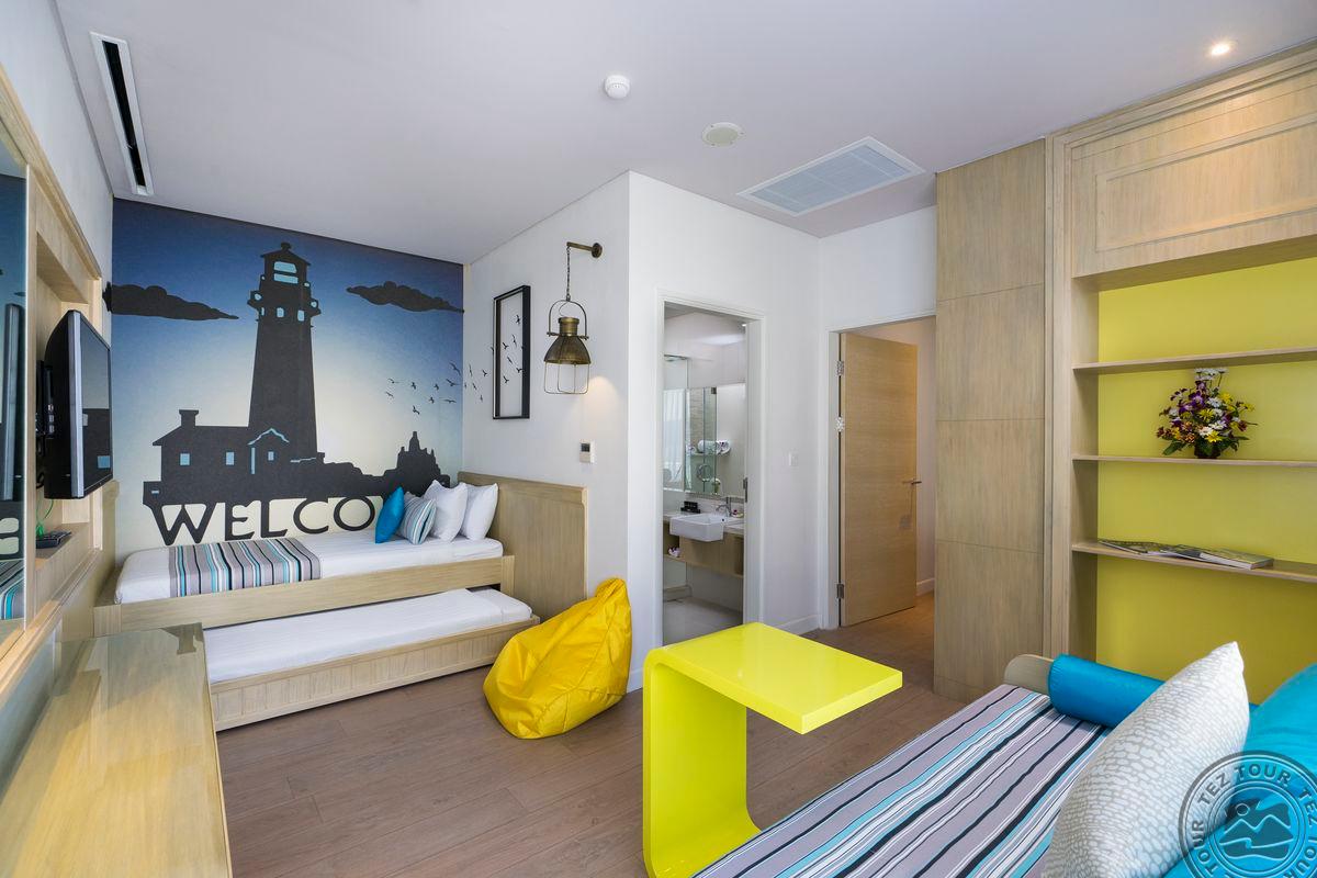 15 Kids Suite (в Family Paradise, спальня, двуспальная кровать King, детская спальня с двухъярусной кроватью, макс. 4+1 чел., 60 м2);