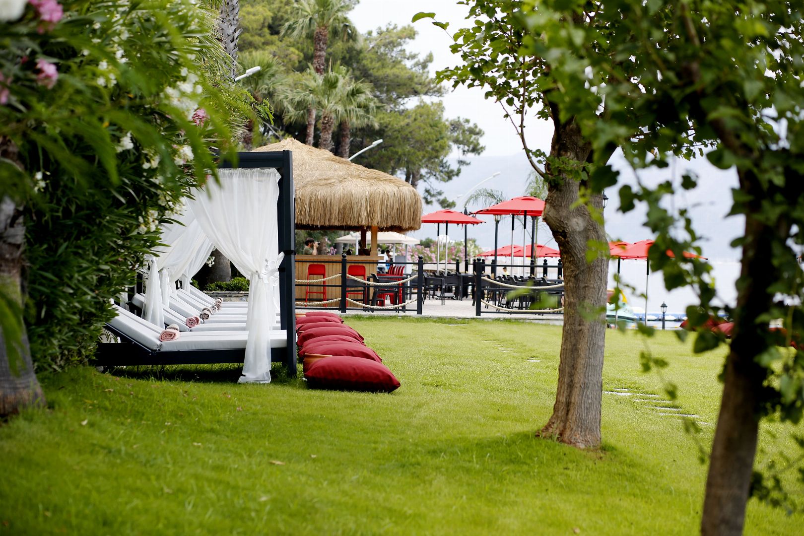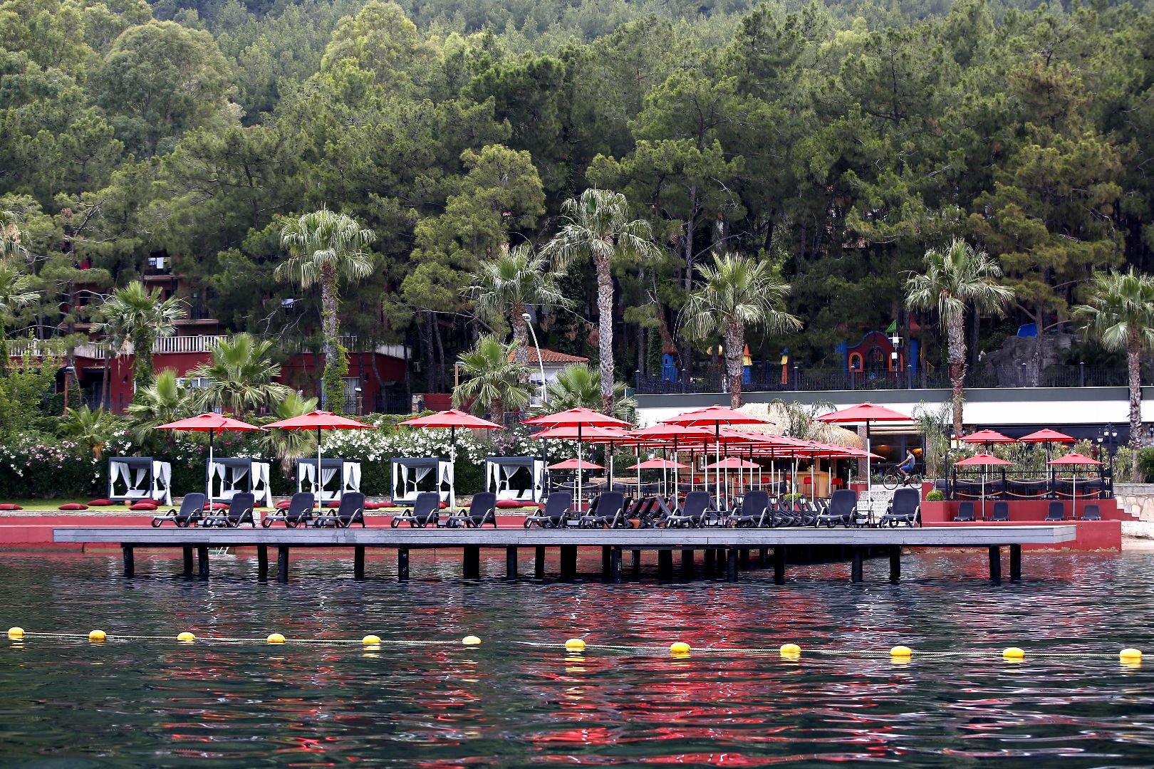 Отель находится на самом берегу моря, в 6 км от Мармариса. Большая красивая территория, развитая инфраструктура, хорошая анимация. Рекомендуем для семейного отдыха с детьми. Представляет собой одно основное 5-ти этажное здание (4 лифта) и комплекс из двадцати шести 2-х и 3-х этажных бунгало (лифта нет). Есть русскоговорящий персонал. КОНЦЕПЦИЯ "ЛЕТО 2023"