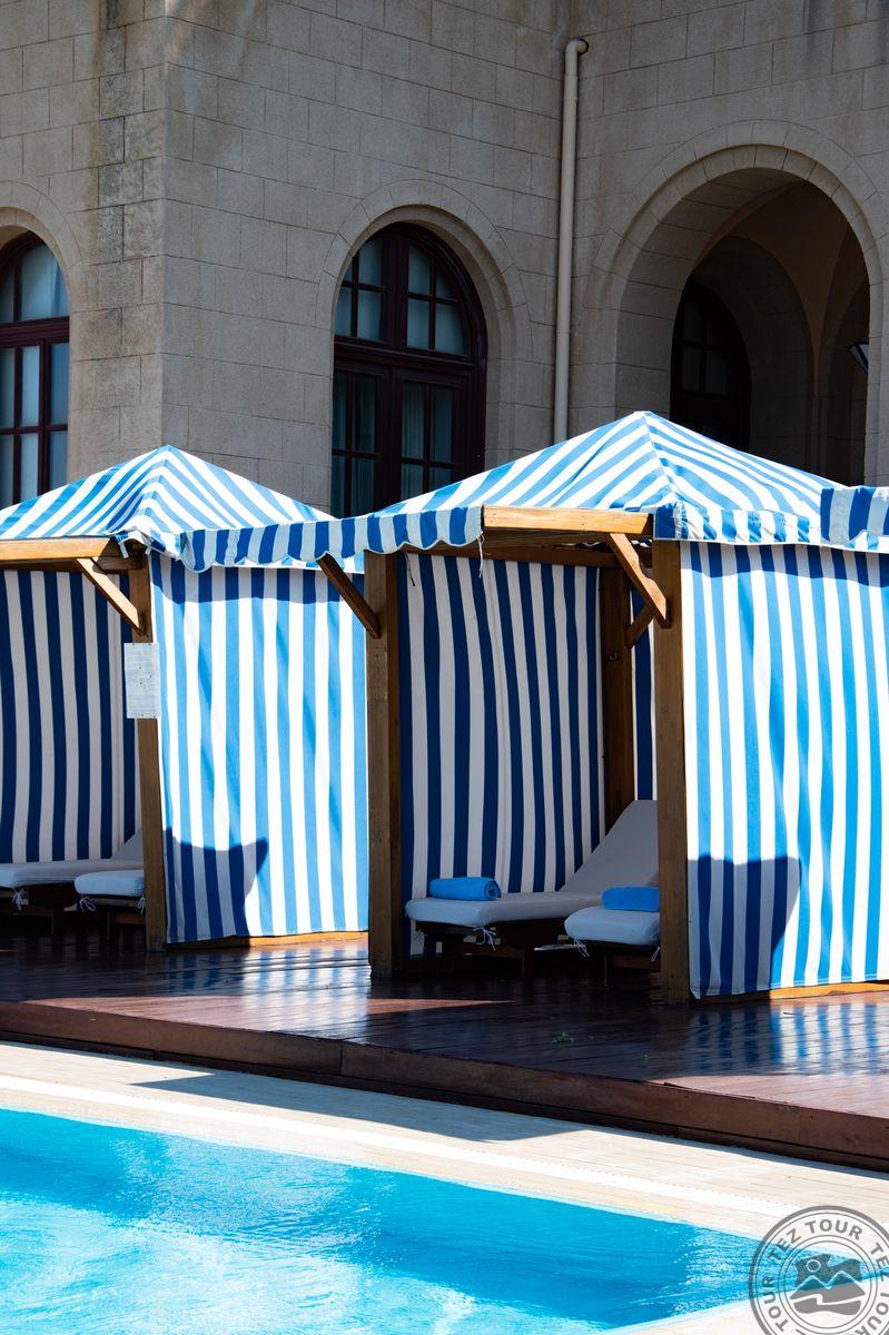 - Расположение: в городе Родос, в 15 км от аэропорта,в 3 км от порта, в одном здании со знаменитым казино Родоса, на берегу моря. Отель: Историческое здание, построенное в 1927 и полностью реновированное в 2002 году. Всего 6 номеров и 27 сьютов. classic room GV (вид на сад, осн.кровать – двуспальная, макс. 2 чел. 23-25 м2); classic room SV (вид на море, осн.кровать – двуспальная, макс. 2 чел. 27-29 м2); junior suite SV (вид на море, однокомнатный номер, осн.кровать – двуспальная, макс. 2 чел. 35-41 м2); junior suite GV (вид на сад, однокомнатный номер, осн.кровать – двуспальная, макс. 2 чел. 35-42 м2); grand suite GV (вид на сад