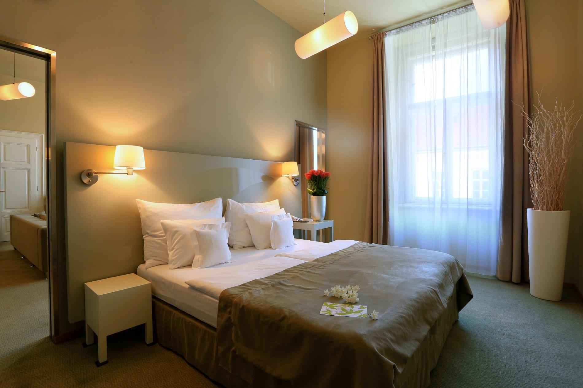 Размещение:В отеле 197 стильных и тихих номеров, большинство из которых выходят окнами в один из самых уютных внутренних двориков Праги. К размещению предлагаются номера категории:- Superior (около 23 кв.м, макс. 3 чел.)- Deluxe (около 26 кв.м, расположены в историческом здании отеля с высокими потолками, макс. 3 чел.)- Junior Suite (около 28 кв.м, расположены в историческом здании отеля с высокими потолками, макс. 3 чел.)- Grandium Suite (около 58 кв.м, гостиная и спальня, гардеробная; макс. 4 чел.)Курение в номерах запрещеноРазмещение с домашними животными не допускается