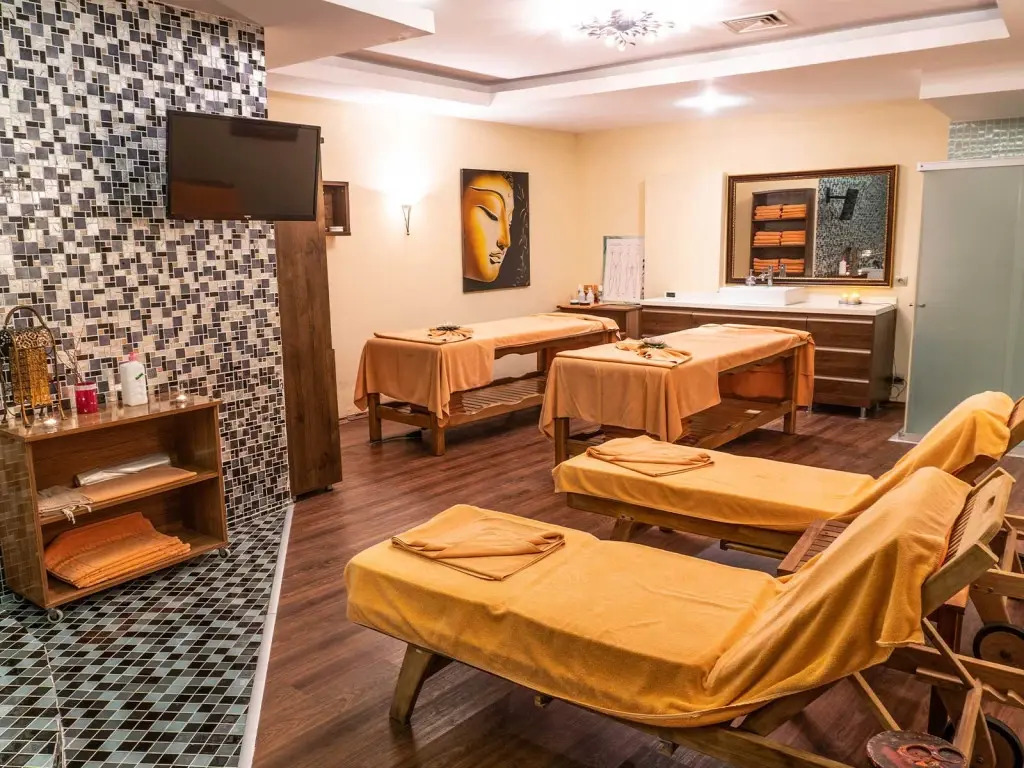 В отеле:Скоротать вечер или приятно провести время перед сном в уютной атмосфере можно в баре. Время вспомнить о хлебе насущном! Для гостей работает ресторан. Кафе отеля — удобное место для перекуса. Хотите оставаться на связи? В отеле есть бесплатный Wi-Fi.; Для путешественников на машине организована парковка. Также для гостей в отеле: массажный кабинет, сауна, солярий, паровая баня и спа-центр. Спортивные гости оценят фитнес-центр, тренажёрный зал и дайвинг. Готовьтесь к весёлому и насыщенному отдыху! На территории есть караоке, библиотека, пинг-понг и площадка для барбекю.; Для участников деловых встреч предусмотрен бизнес-центр. Дети будут рады! Работает детская игровая комната. Доступная среда: работает лифт. Дополнительно: прачечная, химчистка, индивидуальная регистрация заезда и отъезда, гладильные услуги, пресса, прокат автомобилей и консьерж.; Сотрудники отеля поддержат беседу на английском, немецком и русском.
