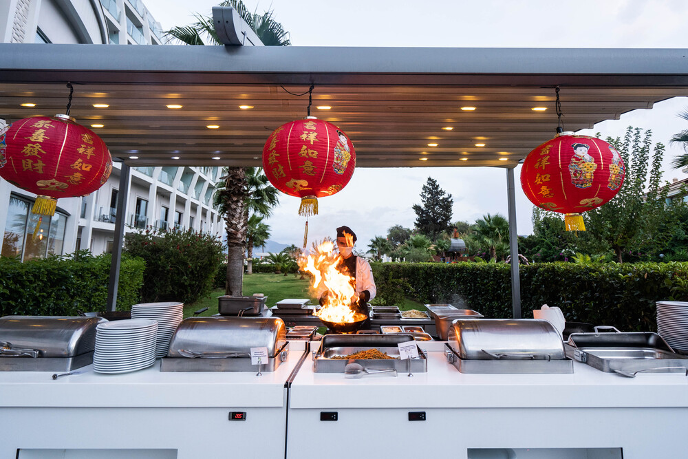 - РестораныГлавный ресторан Saffron (Международная кухня. "Шведский стол". Завтрак с 07:00 до 10:00, обед с 12:30 до 14:00, ужин с 19:00 до 21:30)Snack Restaurant (Закуски с 12:00 до 16:00)Rubino Restaurant (Итальянская кухня. А ля карт. Открыт с 19:00 до 22:00)Diamante Restaurant (Мексиканская кухня. А ля карт. Открыт с 19:00 до 22:00)Sapphire Restaurant (Рыбный ресторан. А ля карт. Открыт с 19:00 до 22:00)Le Ciel Restaurant (Платно. Итальянская, французская кухни. А ля карт. Открыт с 08:00 до 01:00)