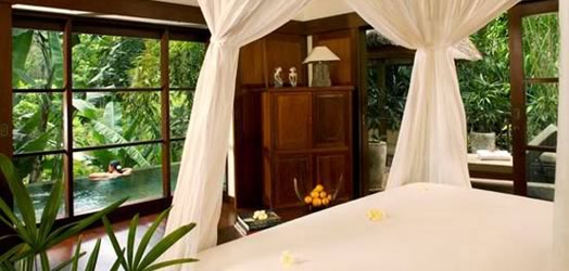 Riverside Deluxe Pool Villa - вилла выполненная в традиционном балийском стиле. Кровать поистине королевского размера или две двуспальные кровати под балдахином, а также роскошную ванную комнату и душ внутри и снаружи.