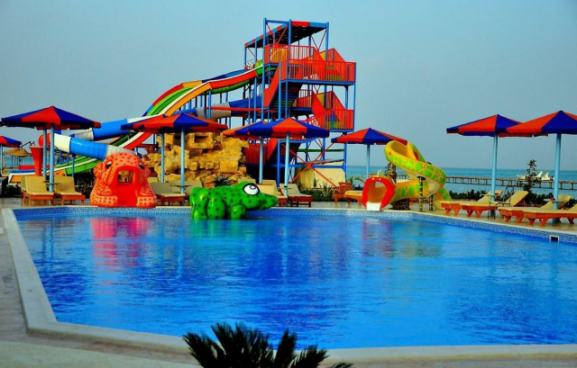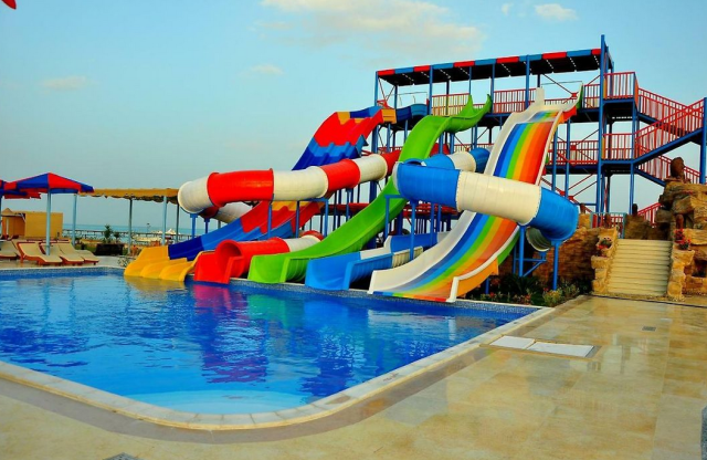 150 номеров, 2 бассейна (один с подогревом в зимний период), аквапарк (7 горок для взрослых и 6 горок для детей), магазин сувениров, обмен валюты, банкомат, сад, сейф на ресепшн ($) ), парковка, услуги химчистки и прачечной, услуги доктора ($), парковка, аренда автомобилей ($)