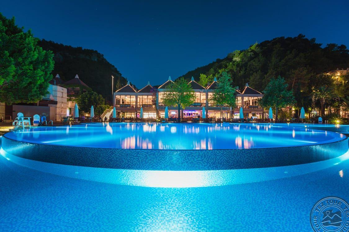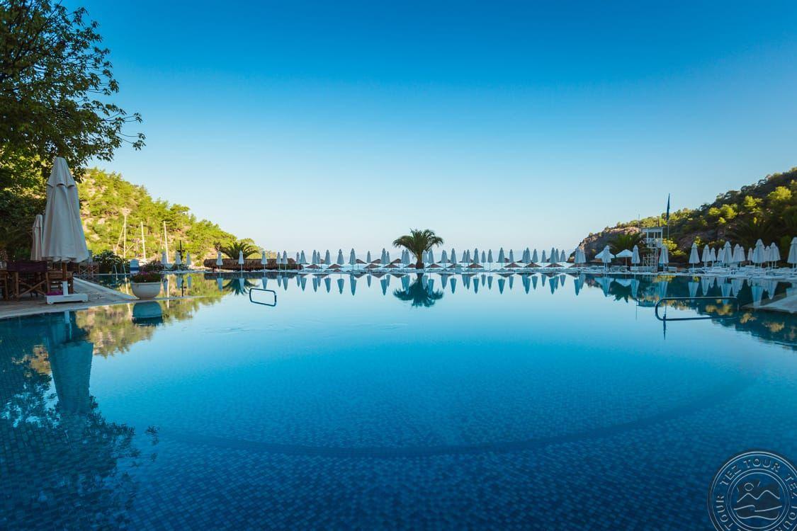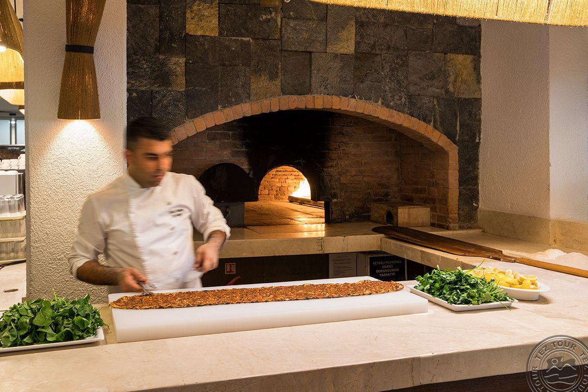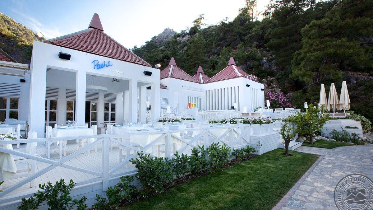 Территория:> рестораны: 1 (основной, есть диетическое и вегетарианское питание, детский стол и детский шеф-повар; выбранное отелем вино определённой марки, пиво и безалкогольные напитки, включены в стоимость) бары: 7 бассейны: 1 (открытый, подогревается в холодное время года) кинозал (на открытом воздухе, 2-3 раза в неделю) спа-центр (турецкий и балийский) конференц-залы: 3 (2 зала на 40-60 чел., 1 зал на 160 чел.) у бассейна полотенца: бесплатно химчистка (платно ) рестораны a la carte: 2 (итальянский и ресторан Pasha – средиземноморская кухня, дети младше 12 лет не допускаются в ресторан Pasha, по предварительной записи 1 раз за 7 дней проживания посещение бесплатно, напитки в la carte – за доп. плату, еда включена в стоимость) кабинет врача (платно) Wi-Fi бесплатно (на всей территории отеля) прачечная платно у бассейна зонтики, шезлонги, матрасы: бесплатно парикмахерская (платно) магазины