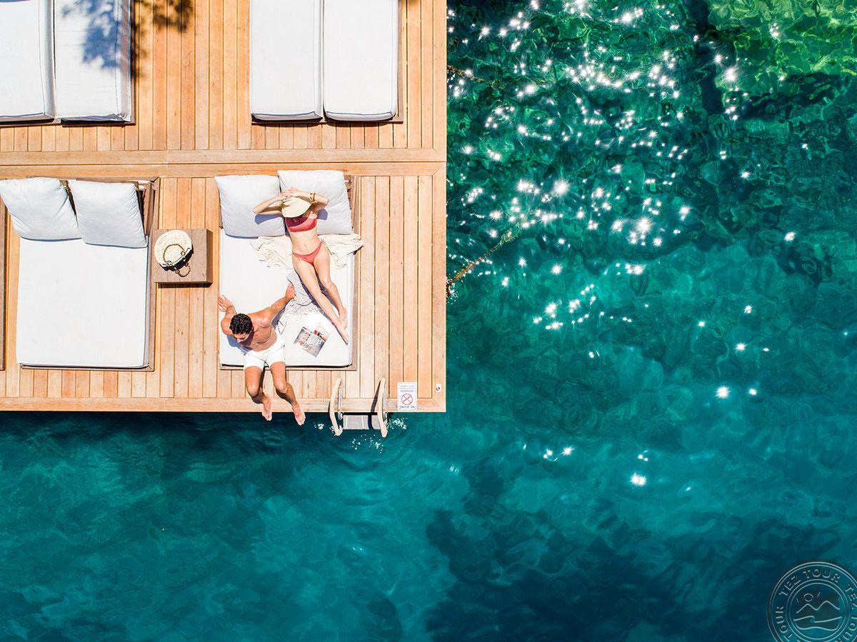 Пляж:> на пляже зонтики, шезлонги, матрасы: бесплатно пирс на пляже полотенца: бесплатно бар на пляже: платно галечный (мелкая галька) платформа (плавающие пляжи-платформы) собственный (частная бухта, есть 2 пляжа для взрослых: Silent Beach и Serenity Beach)