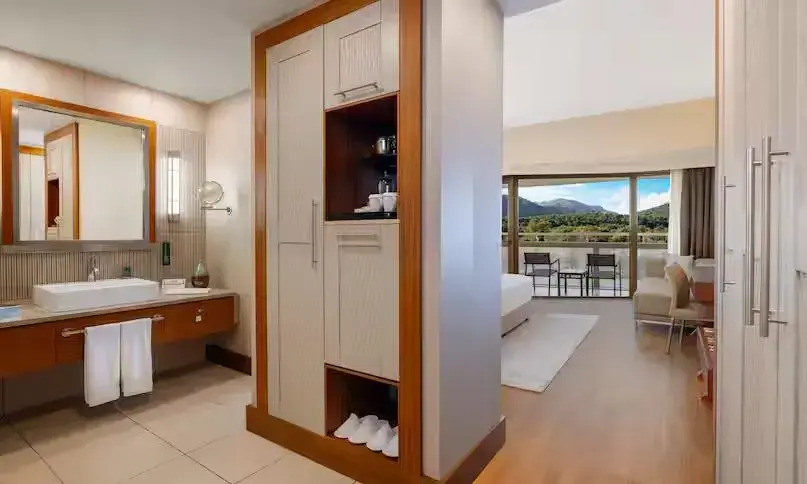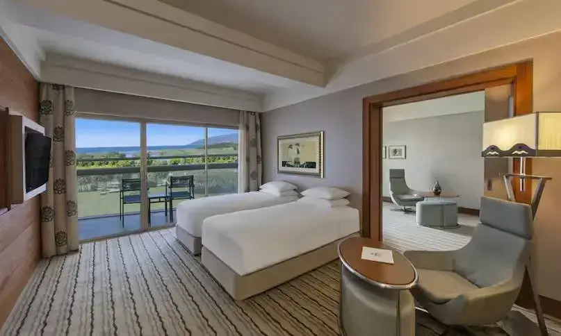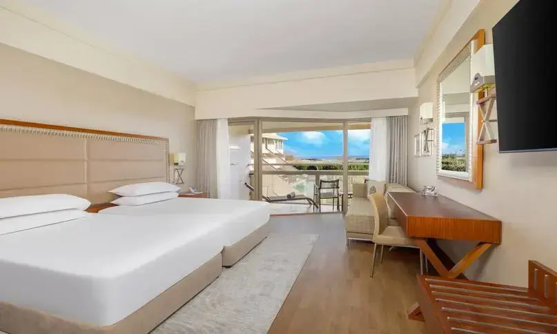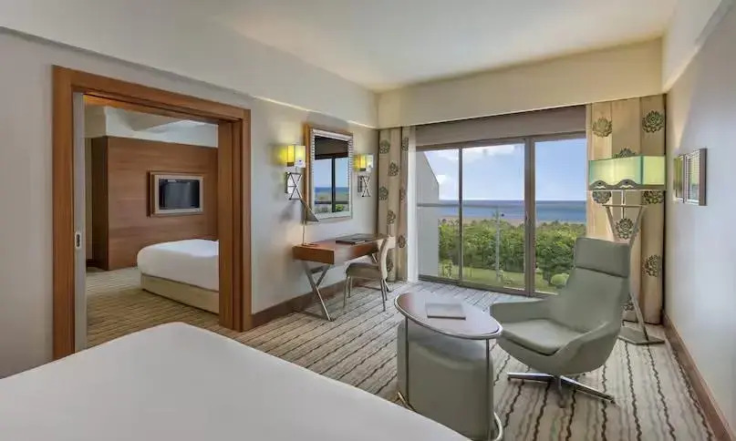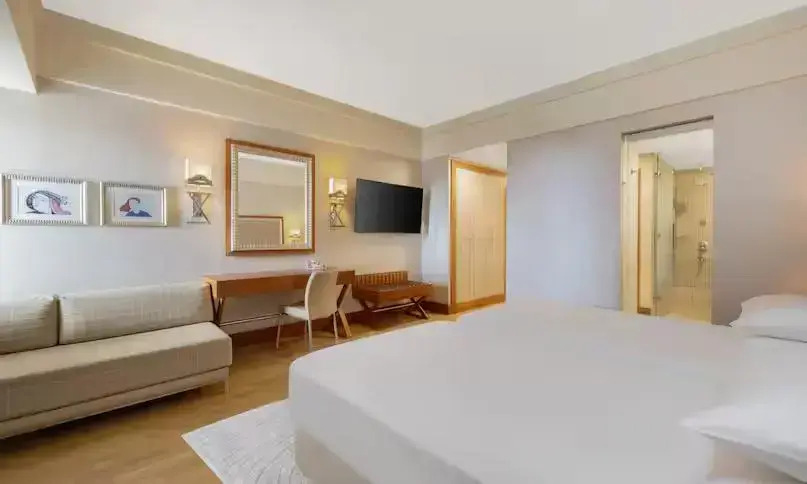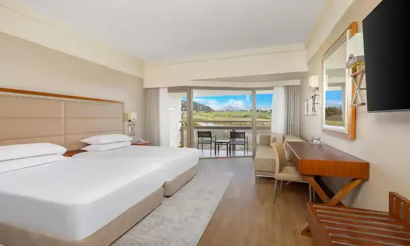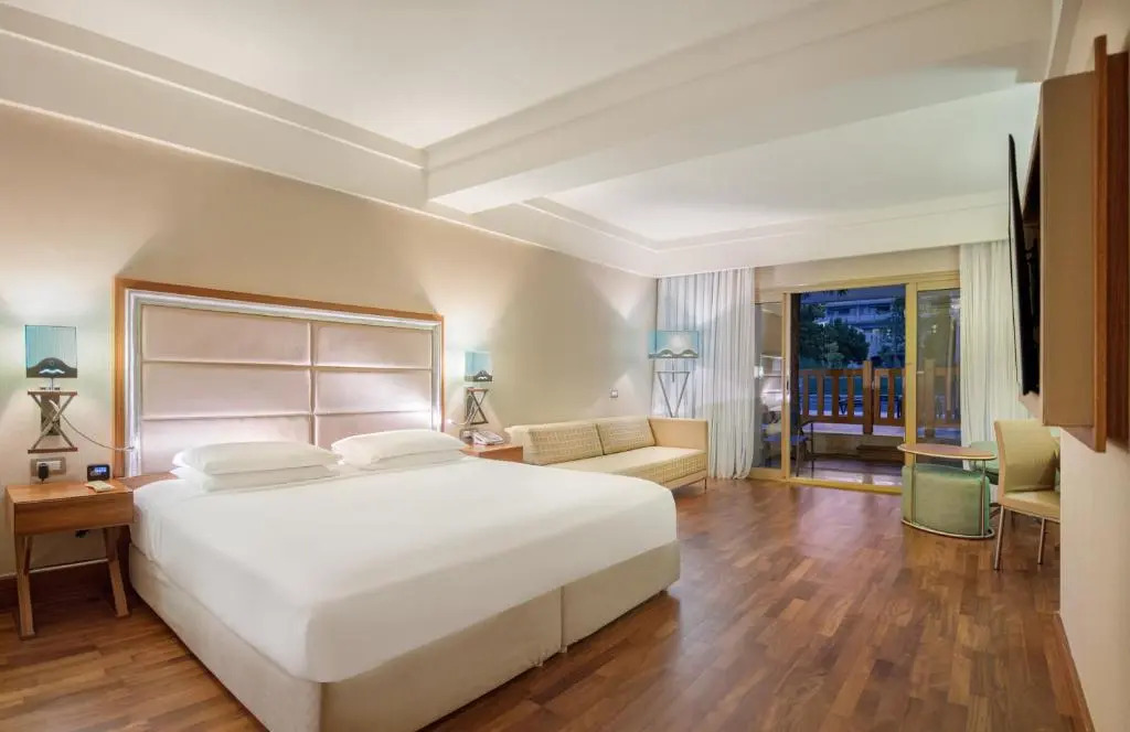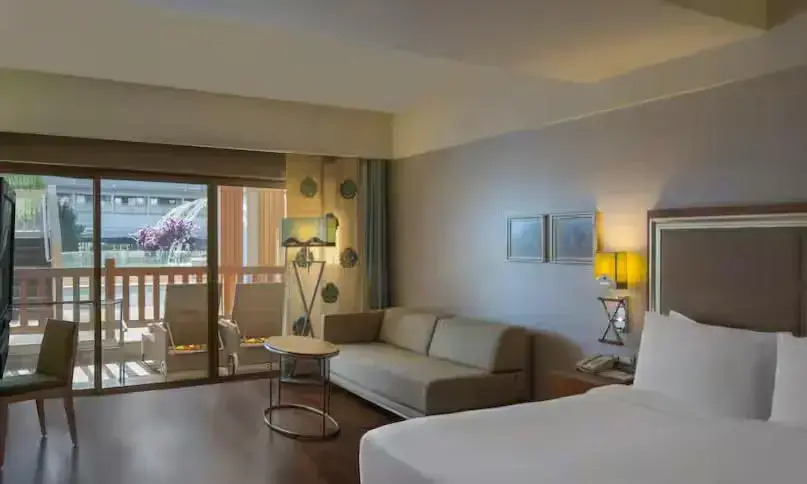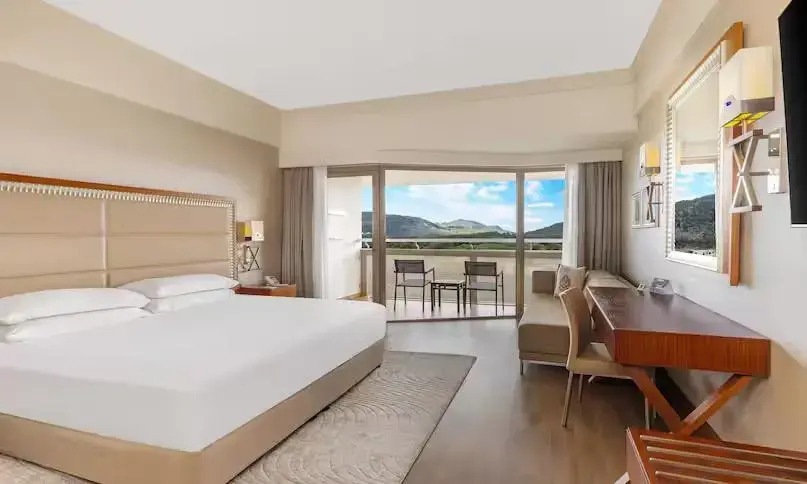 Описание номеров Hilton Dalaman Sarigerme Resort&spa - 5*:В курортном спа-отеле Hilton Dalaman Sarigerme 410 номеров. В ванных комнатах гости найдут дизайнерские туалетные принадлежности. Расслабиться после прогулок по городу можно за просмотром телевизора, а для работы имеется письменный стол и телефон. Напитки вы найдете в мини-баре. Также в номере есть все для приготовления чая и кофе.