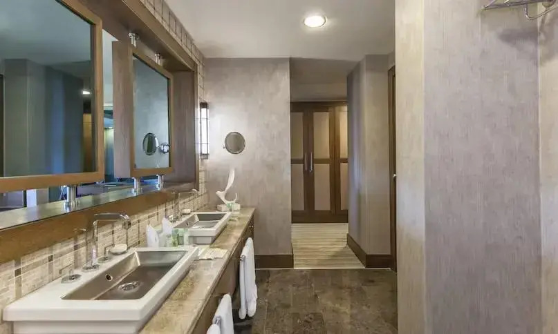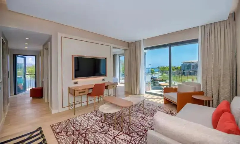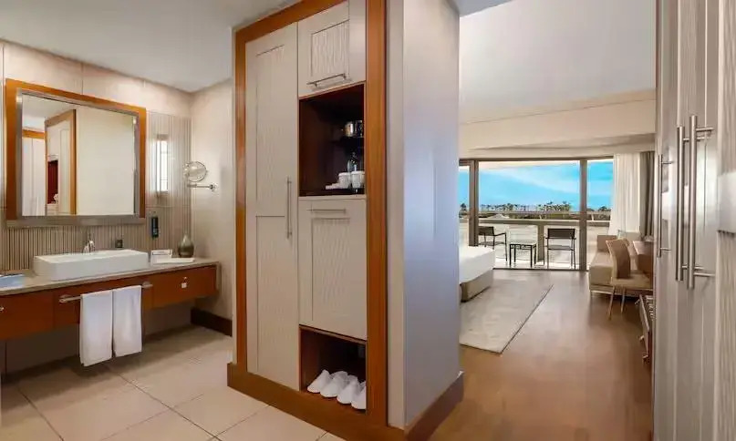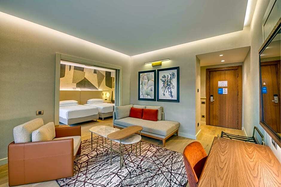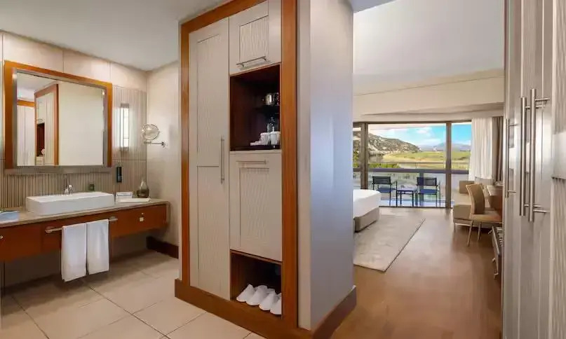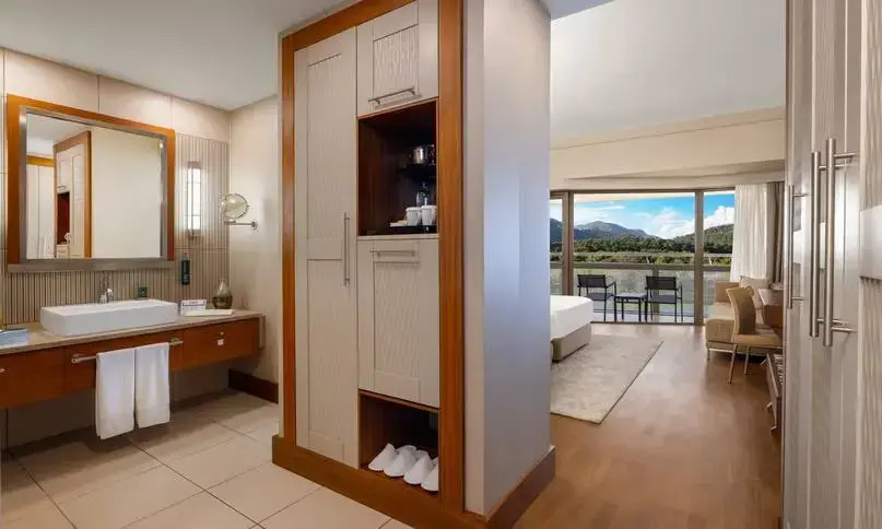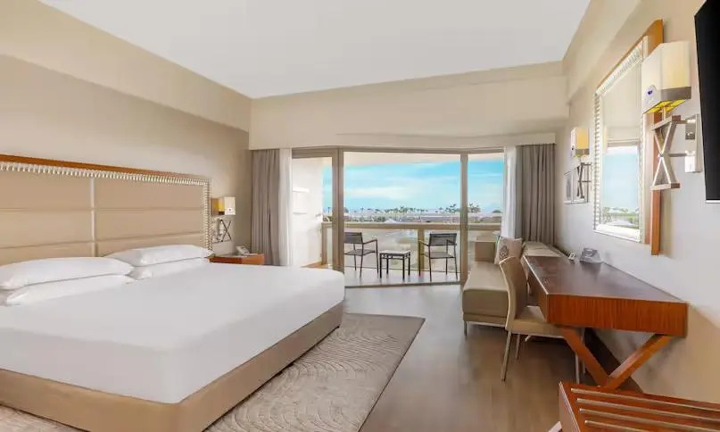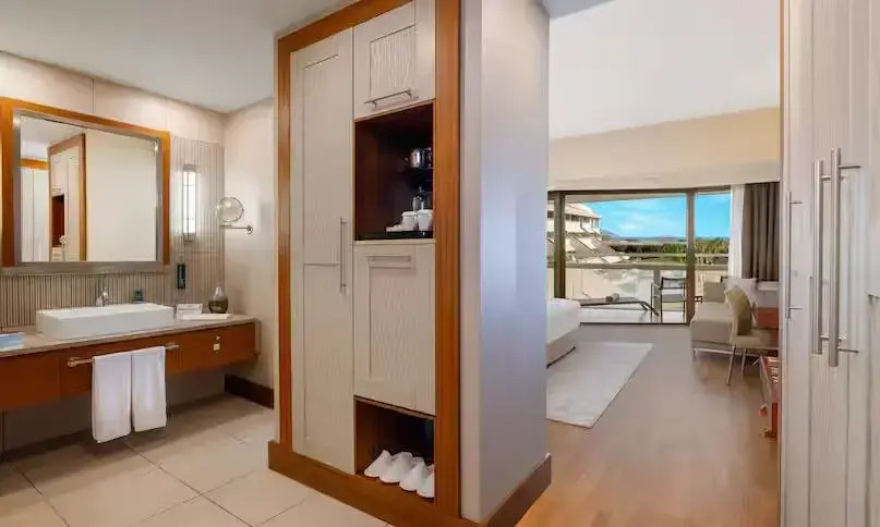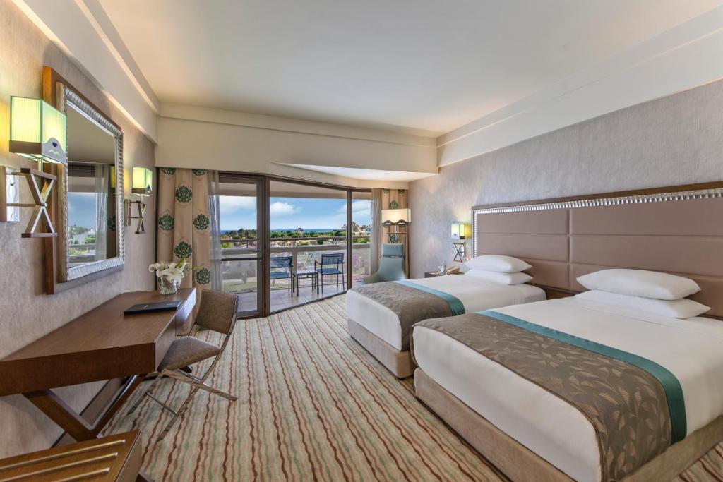 Описание номеров Hilton Dalaman Sarigerme Resort&spa - 5*:В курортном спа-отеле Hilton Dalaman Sarigerme 410 номеров. В ванных комнатах гости найдут дизайнерские туалетные принадлежности. Расслабиться после прогулок по городу можно за просмотром телевизора, а для работы имеется письменный стол и телефон. Напитки вы найдете в мини-баре. Также в номере есть все для приготовления чая и кофе.