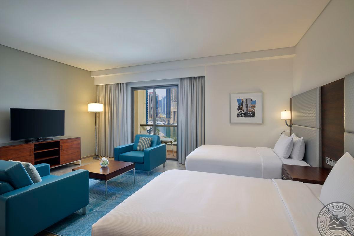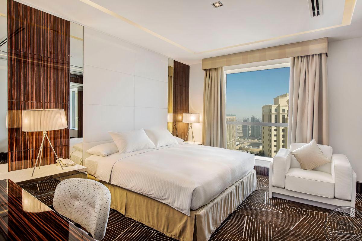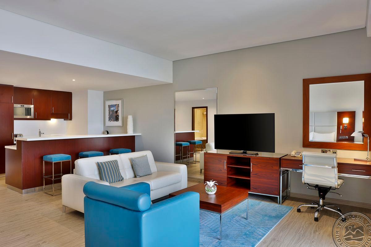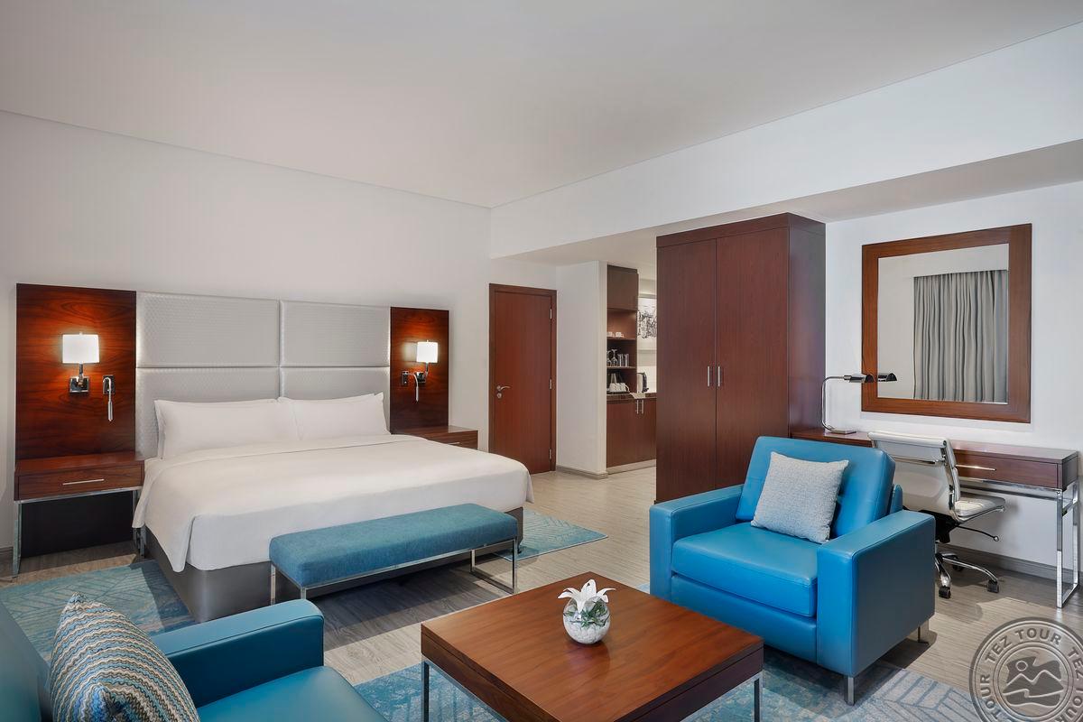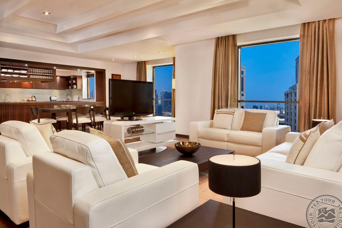 Junior Suite Courtyard View = Junior Suite with Balcony (выше 17 этажа, с видом на Дубай-Марину, спальня и гостиная зона + кухня с барной стойкой (стиральная машина, микроволновая печь, холодильник, кровать king-size, балкон, макс. 3 или 2+2 чел., 60 м2, клубные привилегии, доступ в Executive Club Lounge);