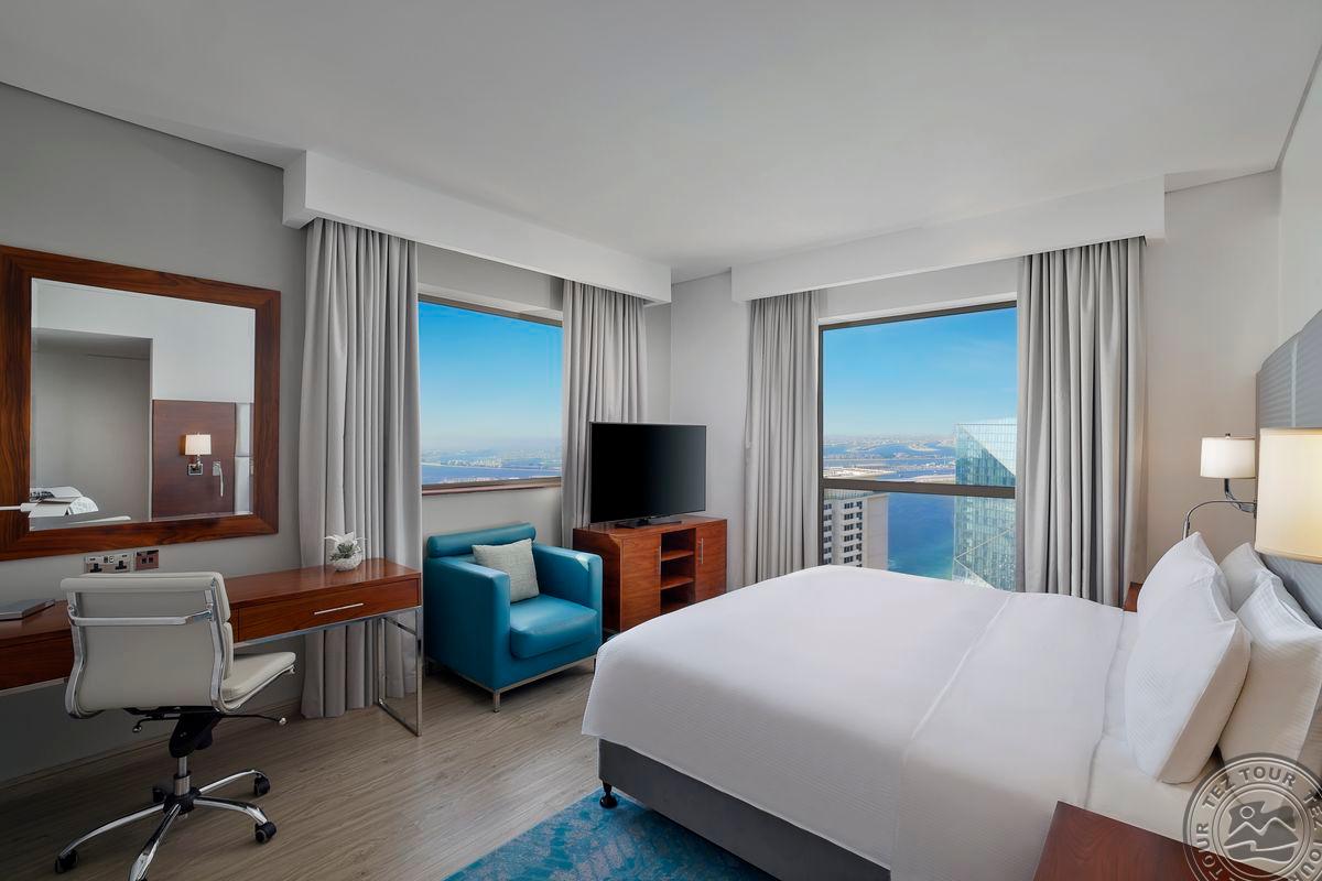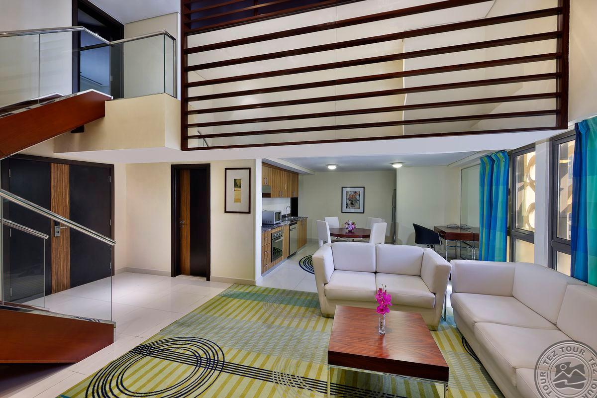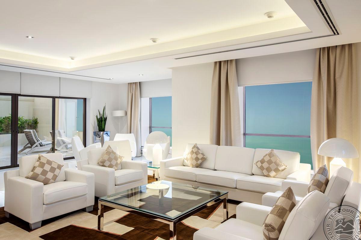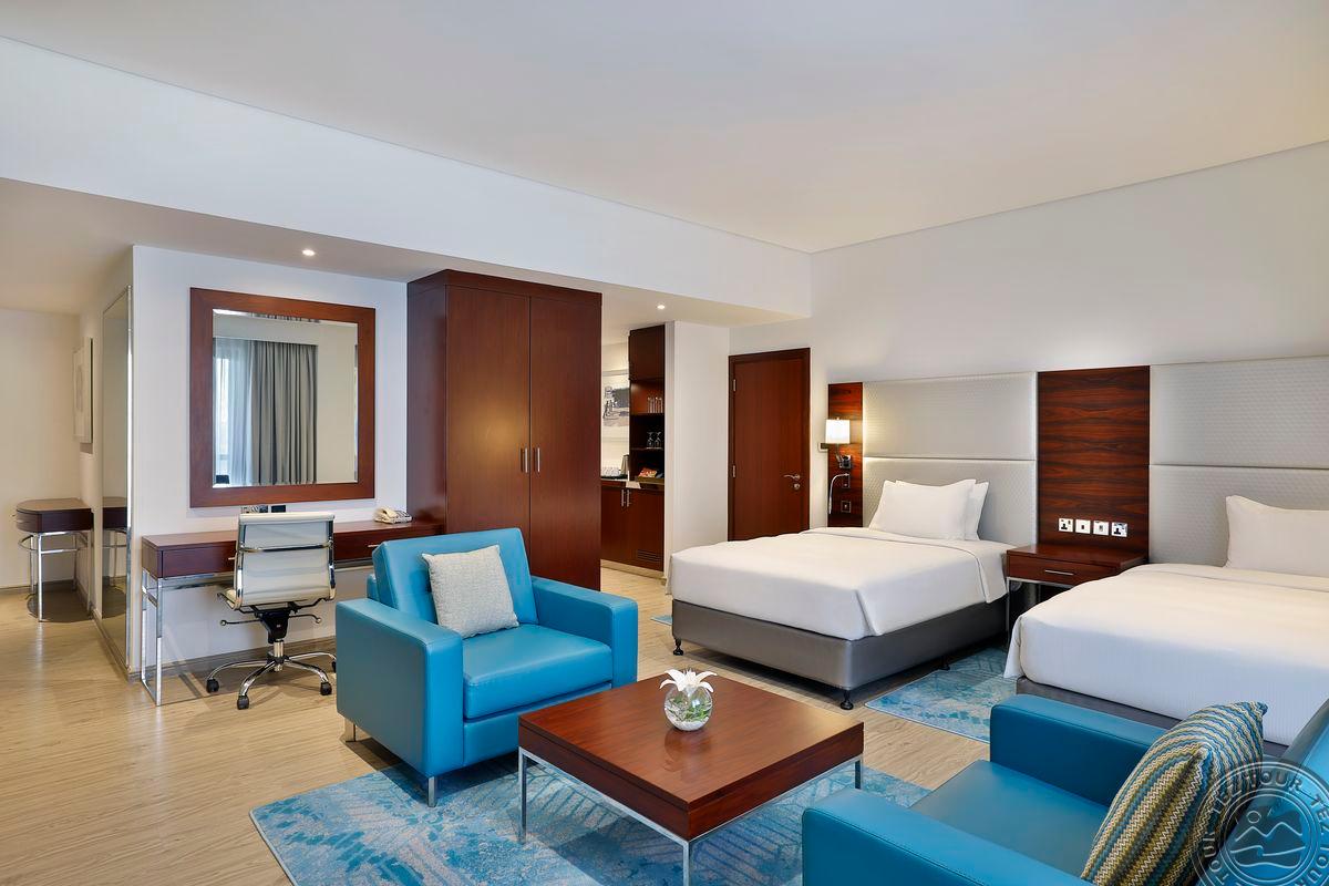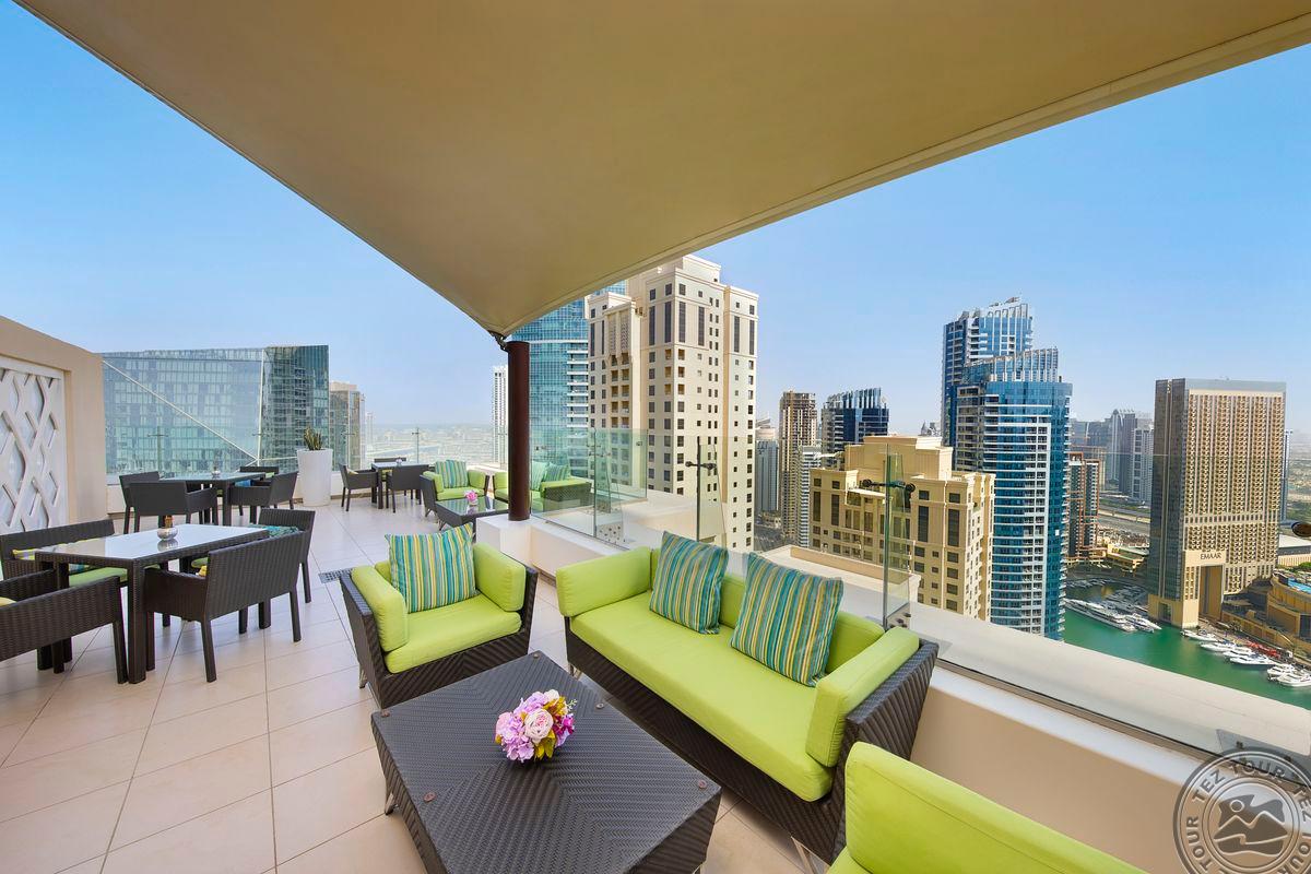 Junior Suite Courtyard View = Junior Suite with Balcony (выше 17 этажа, с видом на Дубай-Марину, спальня и гостиная зона + кухня с барной стойкой (стиральная машина, микроволновая печь, холодильник, кровать king-size, балкон, макс. 3 или 2+2 чел., 60 м2, клубные привилегии, доступ в Executive Club Lounge);