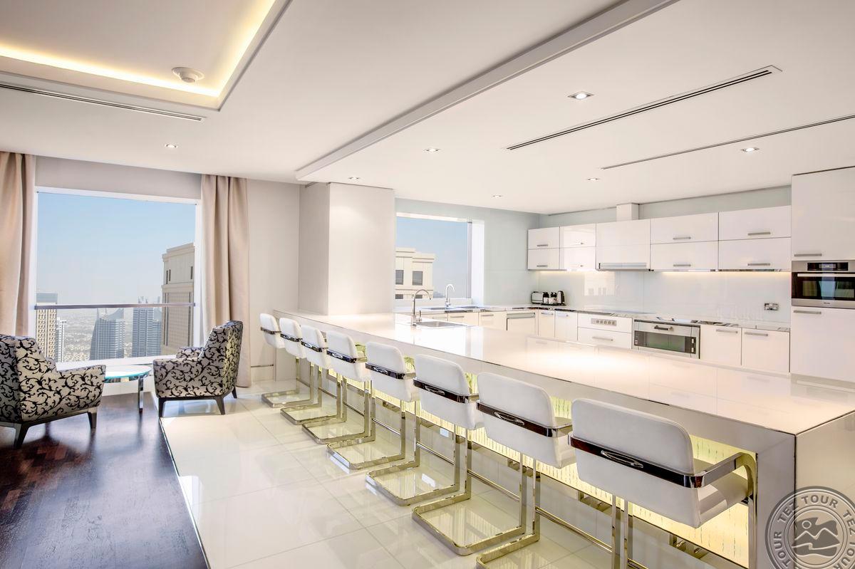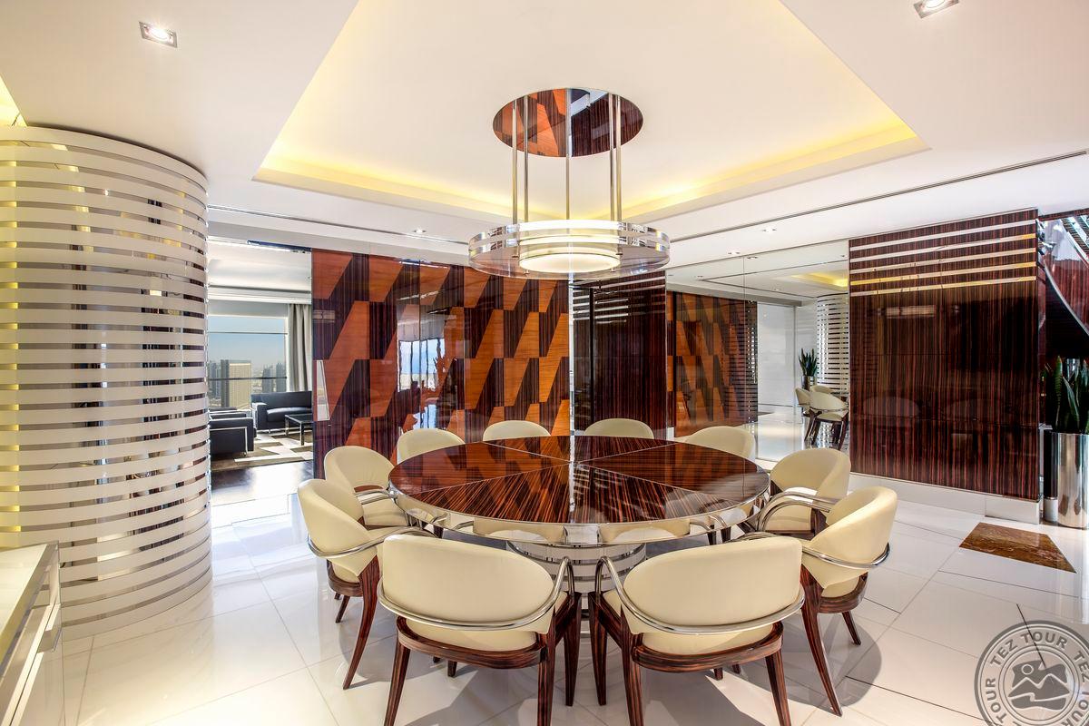 Four Bedroom Presidential Penthouse (на 42 этаже, с видом на Дубай-Марину или море, 4 спальни, 4 кровати king-size, гостиная со столовой зоной (обеденный стол на 8 чел.), кухня (стиральная машина, посудомоечная машина, микроволновая печь, холодильник, плита, тостер, посуда, столовые приборы), комната для прислуги, 3 ванные комнаты и гостевой туалет, терраса 62 м2, макс. 8+2 чел., 540 м2);