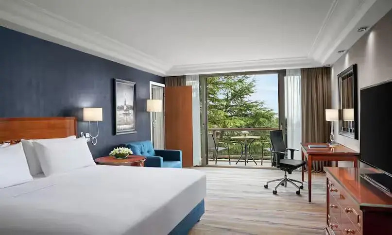 Описание номеров Hilton Istanbul Bosphorus 5*:С балконов 499 комфортабельных номеров отеля Hilton Istanbul открывается вид на пролив Босфор, цветущий сад отеля или город. Стандартная комплектация включает кондиционер, телевизор, телефон и платный высокоскоростной доступ в Интернет. К вашим услугам также мини-бар и сейф.