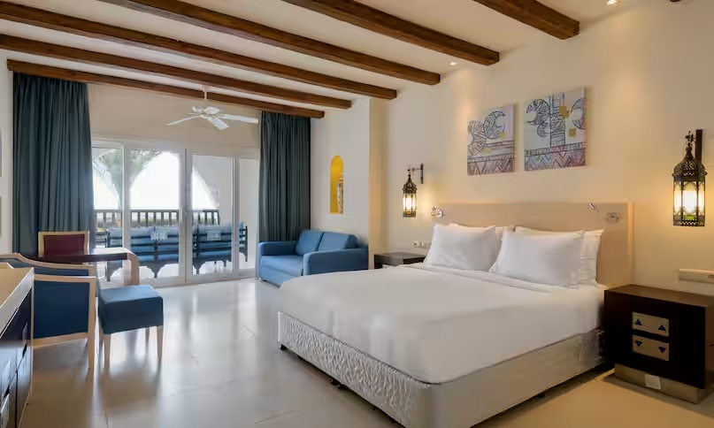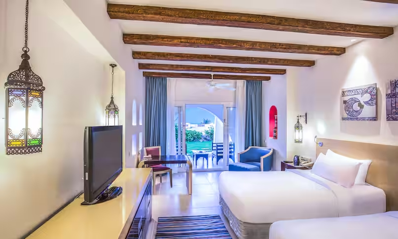 Описание номеров Hilton Marsa Alam Nubian Resort 5*:Курортный отель предлагает размещение в 250 элегантных номерах с балконами. В них вы найдете ЖК-телевизор, телефон,сейф, мини-бар и кондиционер. В индивидуальных ванных комнатах имеются туалетные принадлежности и фен.