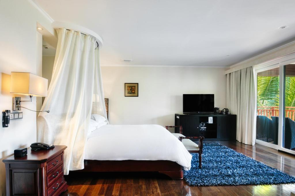Описание номеров Hilton Seychelles Labriz Resort&spa 5*:В курортном спа-отеле Hilton Seychelles Labriz вы можете полностью забыть о повседневных хлопотах. Прекрасно декорированные номера отеля включают кабельное телевидение, DVD-проигрыватель, кондиционер, сейф и телефон.; Расслабьтесь с бокалом вина в вашем внутреннем дворике и насладитесь прекрасным видом на горы или океан. Уборка номера перед сном и обслуживание номеров выполняются ежедневно.