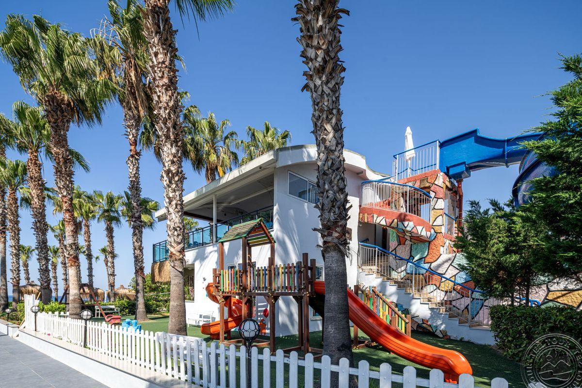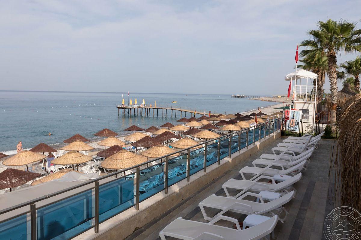 в 85 км от аэропорта г. Анталья, в 35 км от г. Аланья, в 23 км от Манавгата, в 25 км от Сиде, в 10 км от Авсаллар, в поселке Окурджалар, на берегу моря.