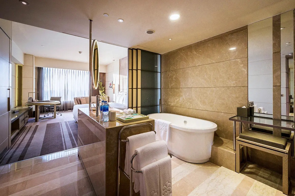 В отеле:Каждое утро отель предлагает своим гостям вкусный завтрак за дополнительную плату. В ресторанах отеля подают блюда китайской, японской и международной кухни.; Гости отеля могут насладиться отдыхом в спа-центре отеля, сауне и бассейне. В отеле имеется оборудованный тренажерный зал.; Рядом с отелем находится бесплатная парковка, где вы можете оставить свой автомобиль. На территории отеля предоставляется бесплатный беспроводной доступ в Интернет.