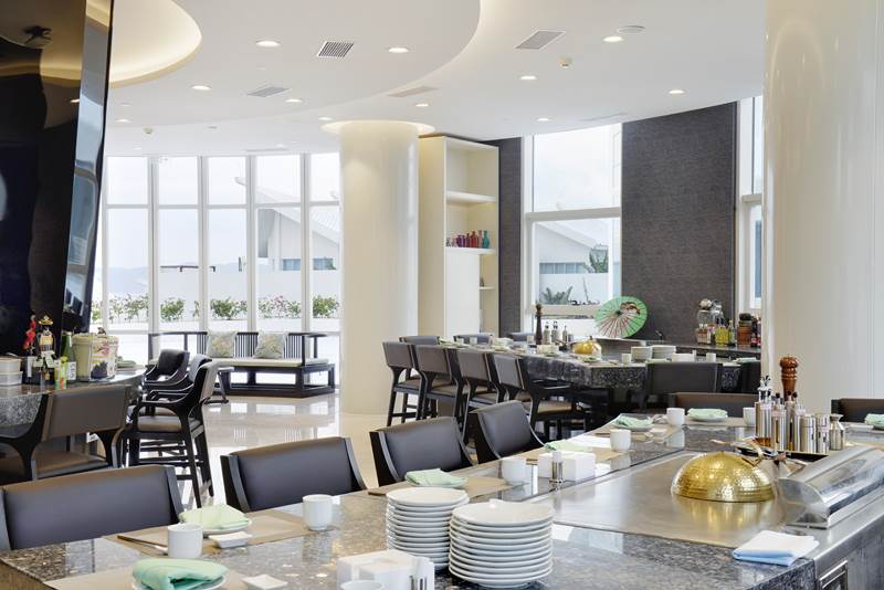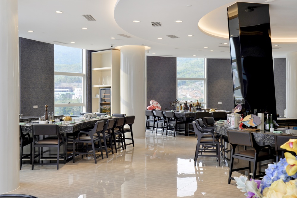 - РестораныQiong Zhong (с 17:30 до 21:30) - a la carte, местная кухняFlame Encounter (с 18:00 до 21:00) - a la carteChinese taste - шведский столOcean theme sea blue (с 09:00 до 21:00) - шведский стол