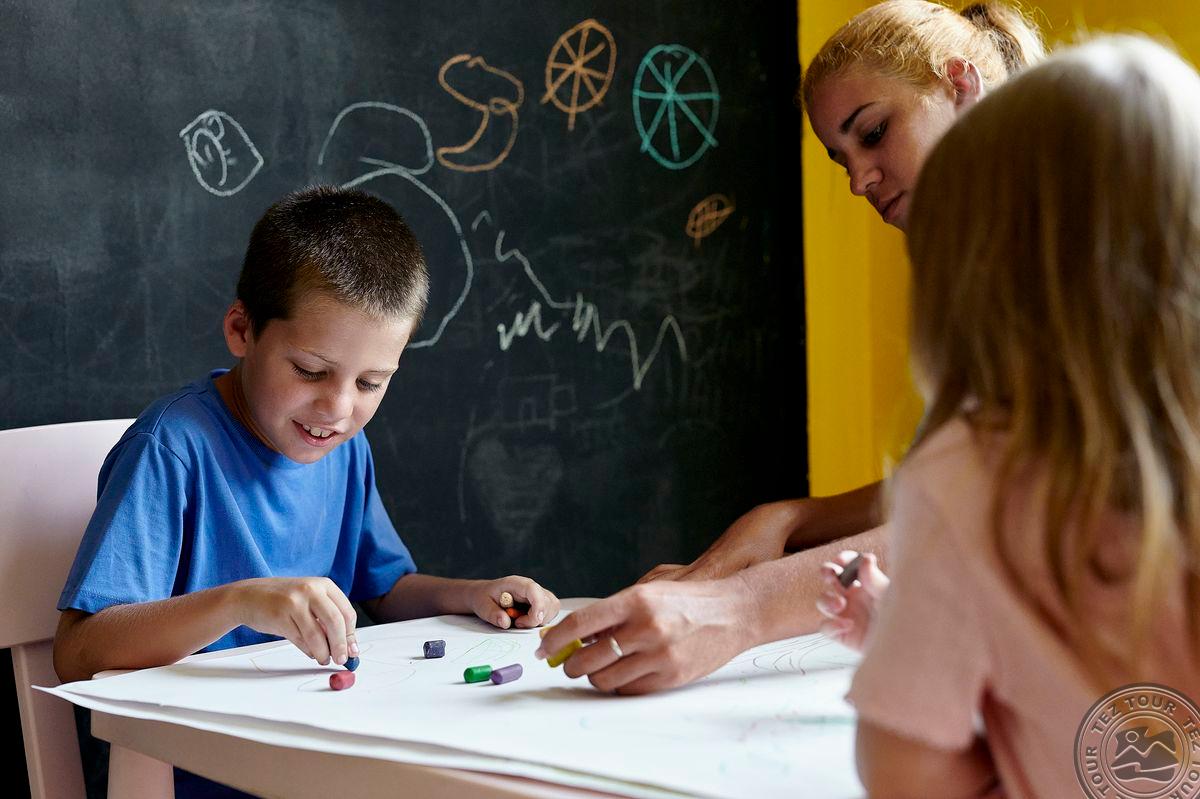 Детям:> детский клуб (4-6, 6-12 лет) детский уголок в ресторане водные горки детский бассейн: есть