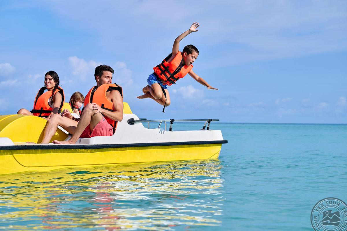 Спорт и развлечения:> моторные водные виды спорта платно вечернее шоу бесплатно гольф платно (Varadero Golf Club - в 3 км от отеля) дартс бильярд живая музыка бесплатно уроки танцев бесплатно массаж платно (на пляже) аэробика баскетбол бесплатно футбол тренажерный зал бесплатно волейбол на пляже тай чи анимация безмоторные водные виды спорта бесплатно йога теннисный корт бесплатно