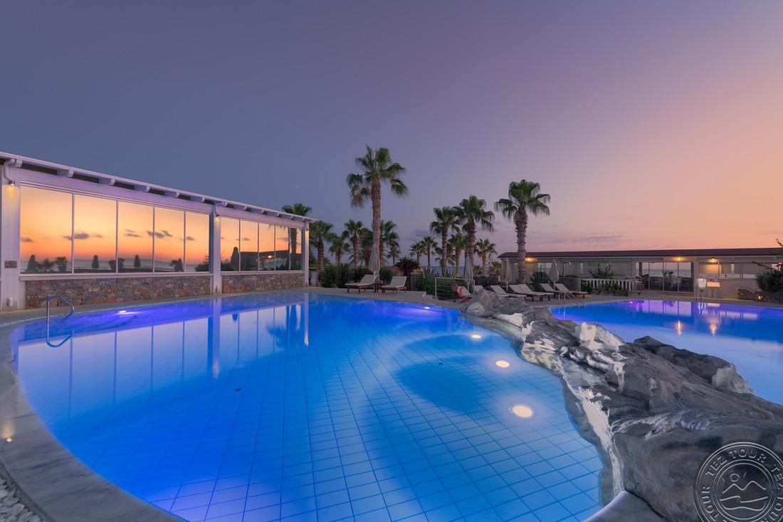 Спорт и развлечения:> бочче бесплатно вечернее шоу бесплатно (несколько раз в неделю) гольф платно (Crete Golf Club, в 10 км от отеля) сауна бесплатно парная бесплатно освещение теннисного корта платно бильярд платно живая музыка бесплатно (несколько раз в неделю) водные виды спорта платно массаж платно игровая комната платно аэробика бесплатно джакузи бесплатно тренажерный зал бесплатно уроки тенниса платно (по запросу) волейбол на пляже бесплатно анимация бесплатно (soft) настольный теннис бесплатно йога бесплатно дайвинг-центр платно теннисный корт бесплатно