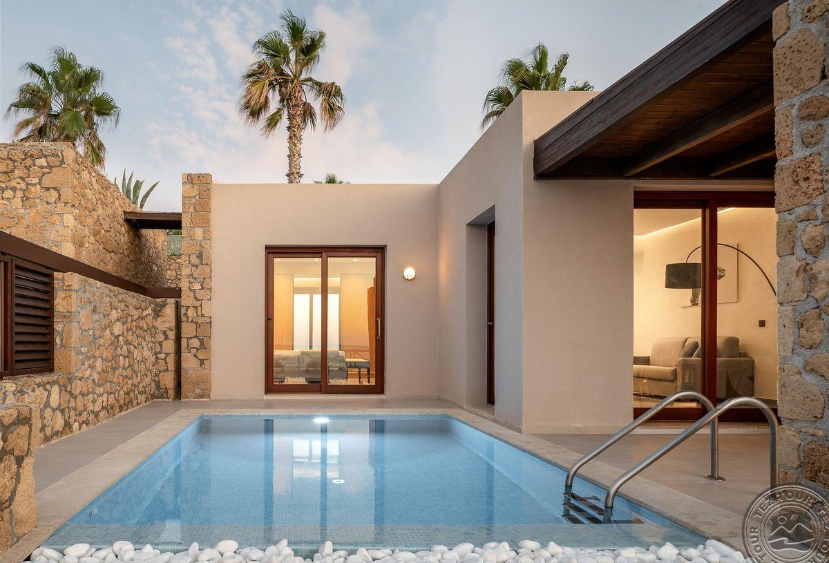Suite Sea View Private Pool (расположены в комплексе бунгало, вид на море, спальня с дверью и гостиная, осн. кровать - двуспальная, доп. –диван, индивидуальный бассейн, макс. 3 чел., 48 м2);