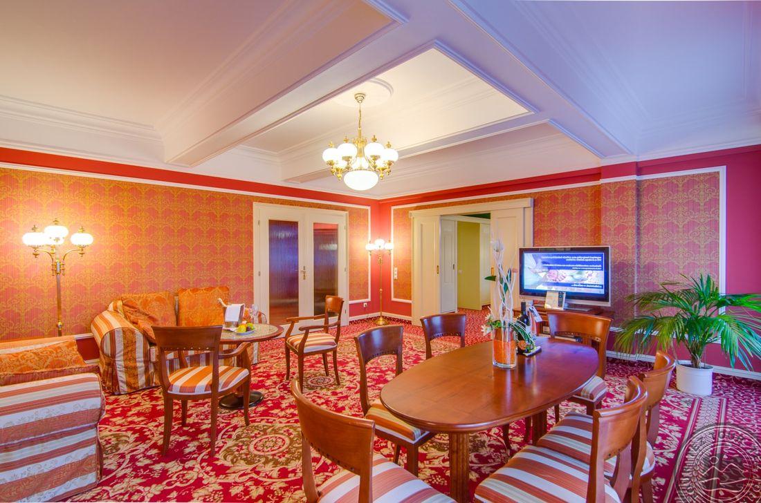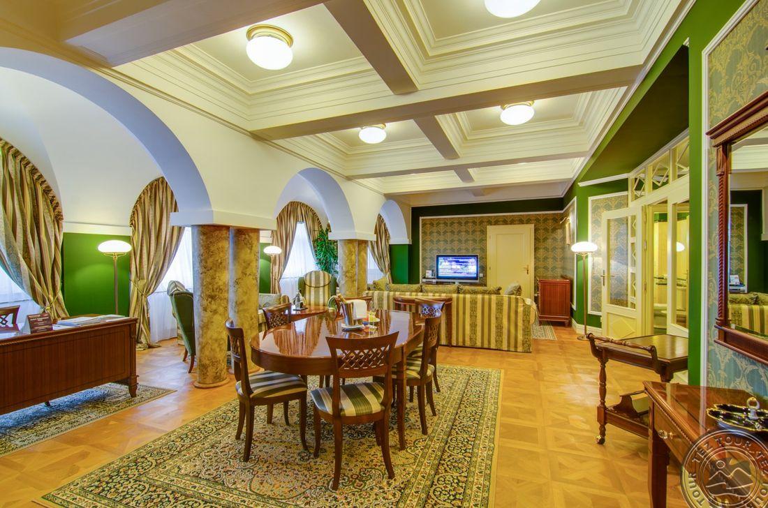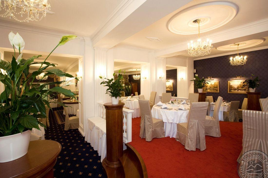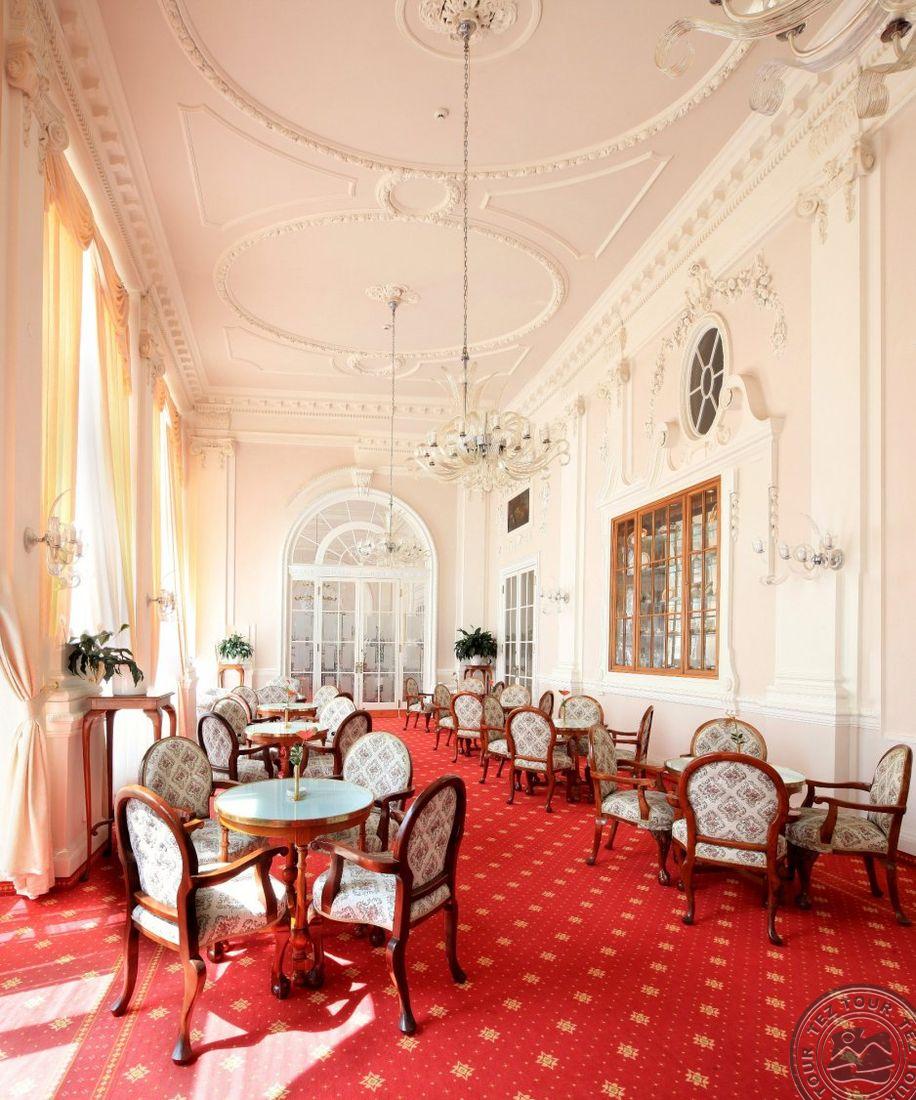 Питание в Imperial 5*:BB BB: завтрак – шведский стол. HB + TREATMENT HBT - комплексное курортное лечение с полупансионом (приветственный напиток, вступительный, контрольный (при условии бронирования от 12 ночей) и заключительный медицинский осмотр, лабораторные анализы по назначению врача, возможность консультирования специалистом по диетпитанию, курс приема минеральной воды, до 18 процедур в неделю на основании предписаний лечащего врача индивидуально) HB HB: завтрак – шведский стол, ужин - выбор блюд по меню (чешская и международная кухня). FB FB: завтрак – шведский стол, обед и ужин - выбор блюд по меню (чешская и международная кухня). FB + TREATMENT FBT - комплексное курортное лечение с полным пансионом (приветственный напиток, вступительный, контрольный (при условии бронирования от 12 ночей) и заключительный медицинский осмотр, лабораторные анализы по назначению врача, возможность консультирования специалистом по диетпитанию, курс приема минеральной воды, до 18 процедур в неделю на основании предписаний лечащего врача индивидуально)