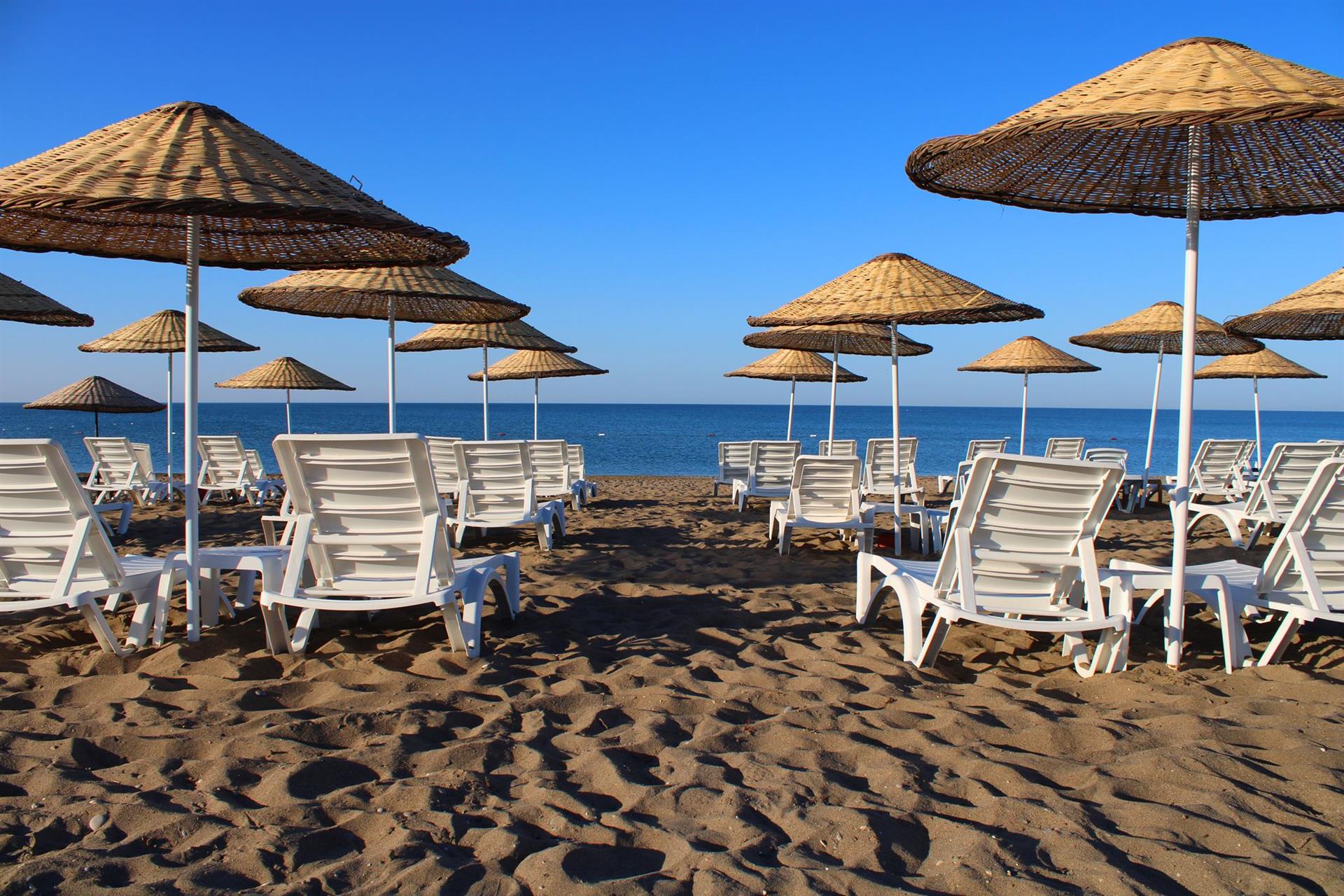 Шезлонги, зонтики, пляжные полотенца - бесплатно.