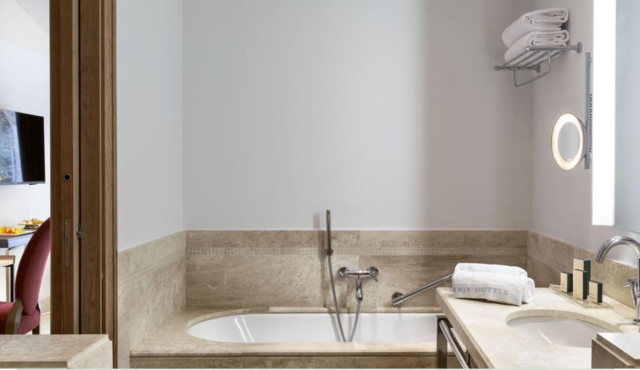 Junior suite (43-61м2) - просторные номера, с двуспальной кроватью или двумя односпальными кроватями, гардеробной, зоной отдыха с письменным столом, диваном, креслом и пуфом. В ванной комнате есть ванна и душевая кабина. В большинстве номеров есть патио, лоджия или балкон, откуда открывается прекрасный вид