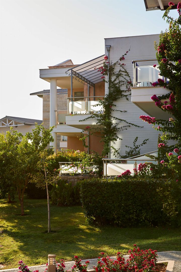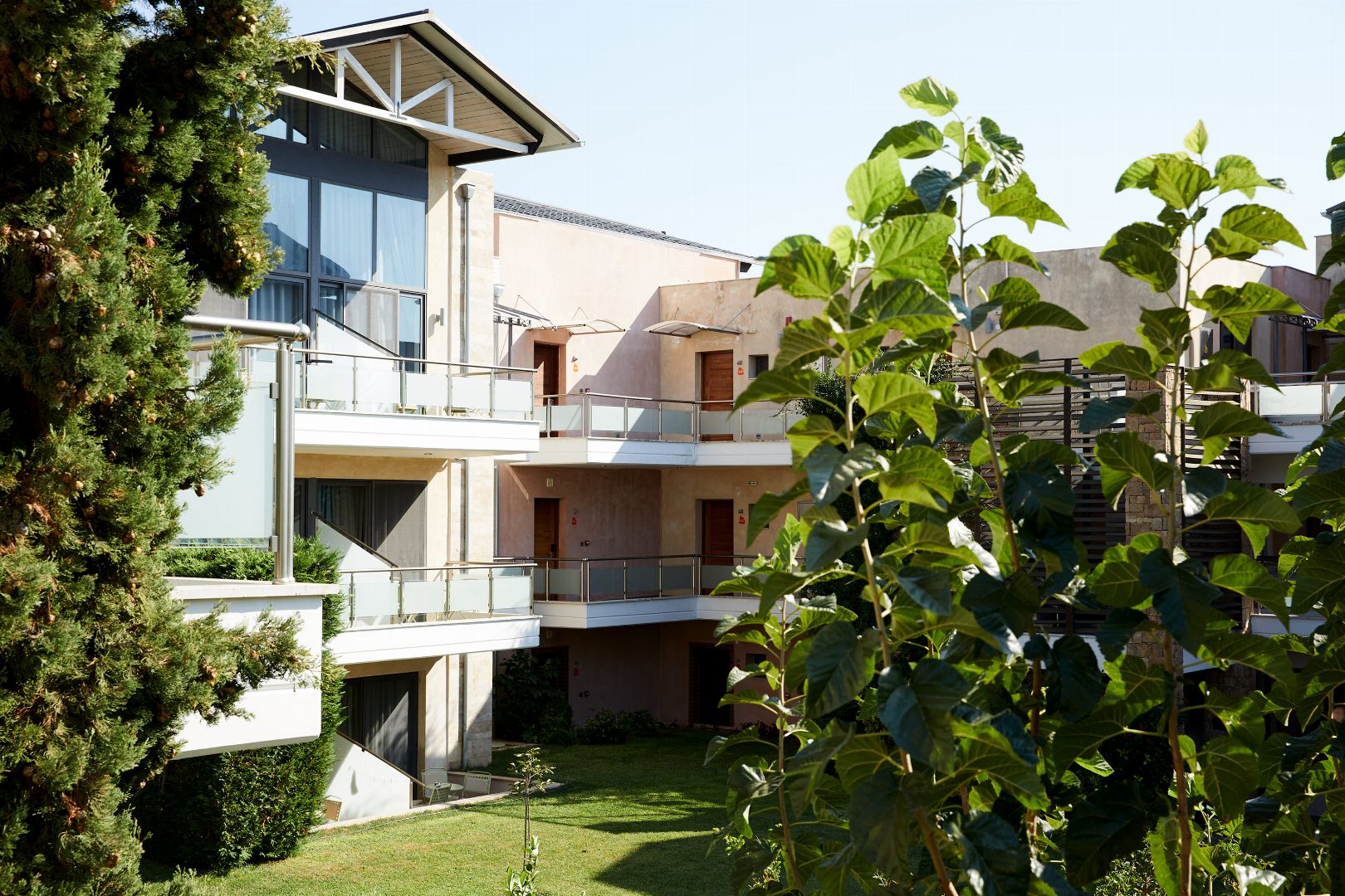 Полуостров Кассандра, у исторического канала Потидеа, в 4 км от г. Муданья, в 54 км от аэропорта «Македония» г. Салоники.
