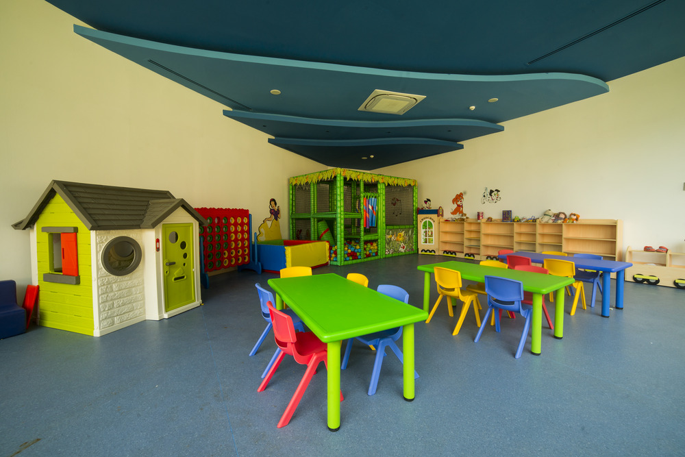 Детский бассейн, Детский клуб: 4-12 лет, Детская площадка, Детское меню: (обед и ужин), Детская кроватка: (по запросу, при наличии), Услуги няни: от 2 лет (по запросу - платно)