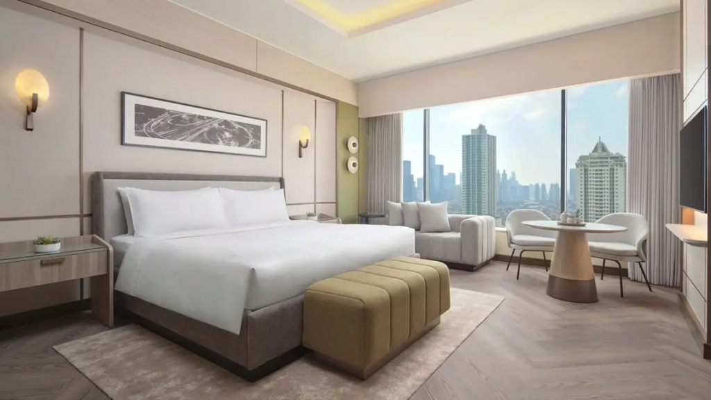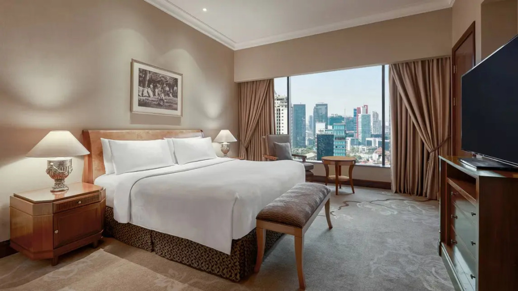 Описание номеров Jw Marriott Hotel Jakarta 5*:В пятизвездочном отеле JW Marriott Jakarta 333 современных номера с окнами от пола до потолка, из которых открывается захватывающий вид на город. Гости могут самостоятельно приготовить себе любимый напиток, воспользовавшись кофеваркой/ чайником или взять готовый коктейль из мини-бара. Вечером гости могут воспользоваться проводным доступом в Интернет за дополнительную плату.; Обслуживание номеров предоставляется ежедневно.