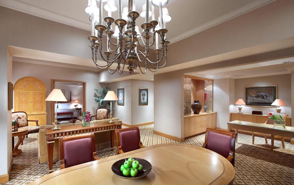 В отеле:Благодаря расположению в деловом центре города и развитой инфраструктуре, отель понравится бизнесменам.; Утром гостям отеля бесплатно предложат сытный завтрак. В течение дня гости могут перекусить в одном из 5 ресторанов отеля, где гости смогут попробовать блюда местной и международной кухни, приготовленные прямо у них на глазах.; После прогулок по городу и осмотра достопримечательностей гости могут расслабиться в открытом бассейне или сауне. Провести отдых с пользой для здоровья поможет спа-центр, где гостям предложат полный спектр услуг по уходу за лицом и телом. Для маленьких гостей работает детский бассейн.; Для деловых людей в отеле работает бизнес-центр с соответствующими услугами. Купить подарки родным и свежую прессу можно в магазинах сувениров и газетных киосках.