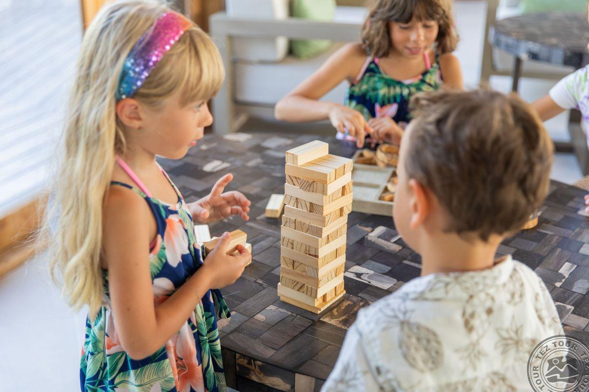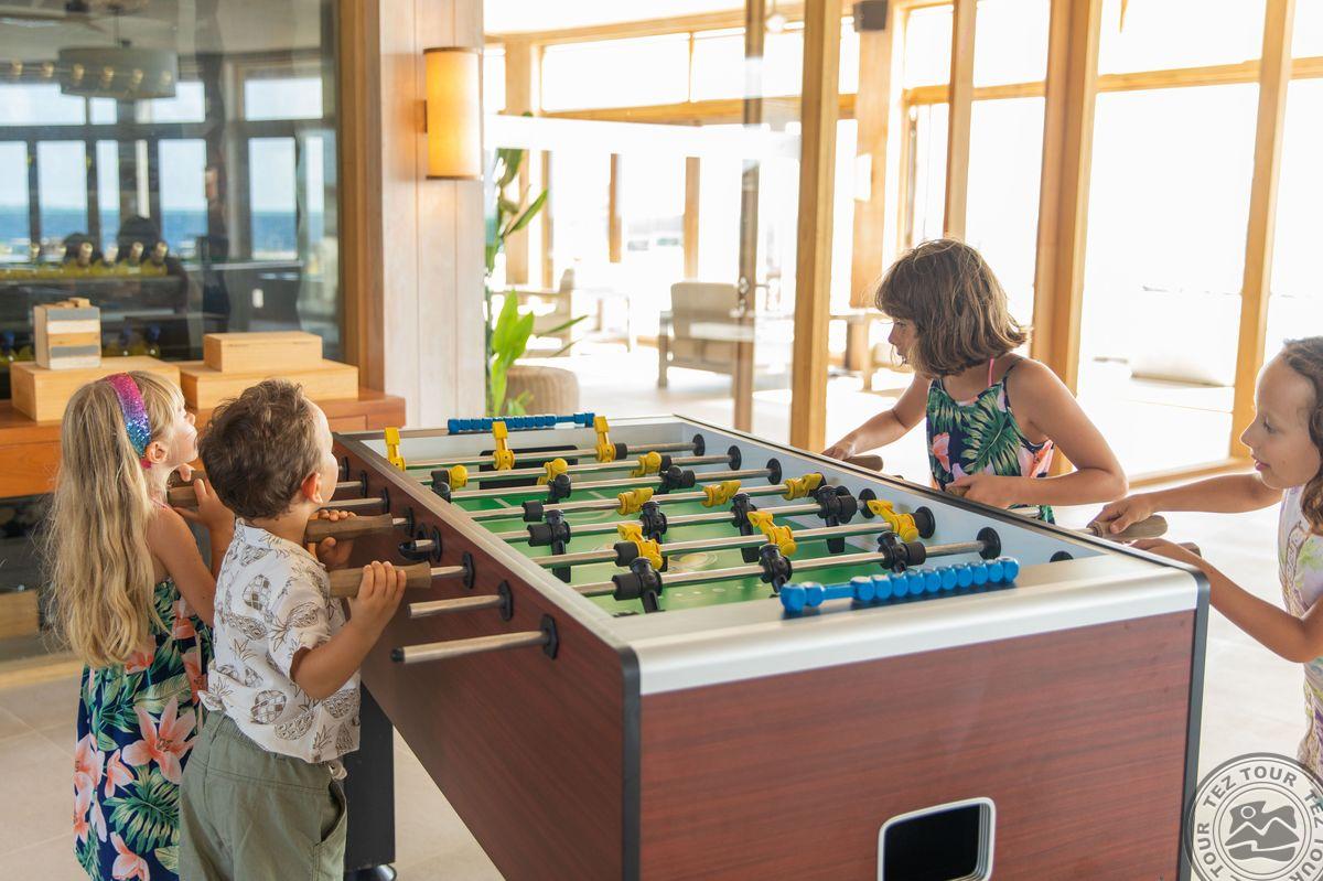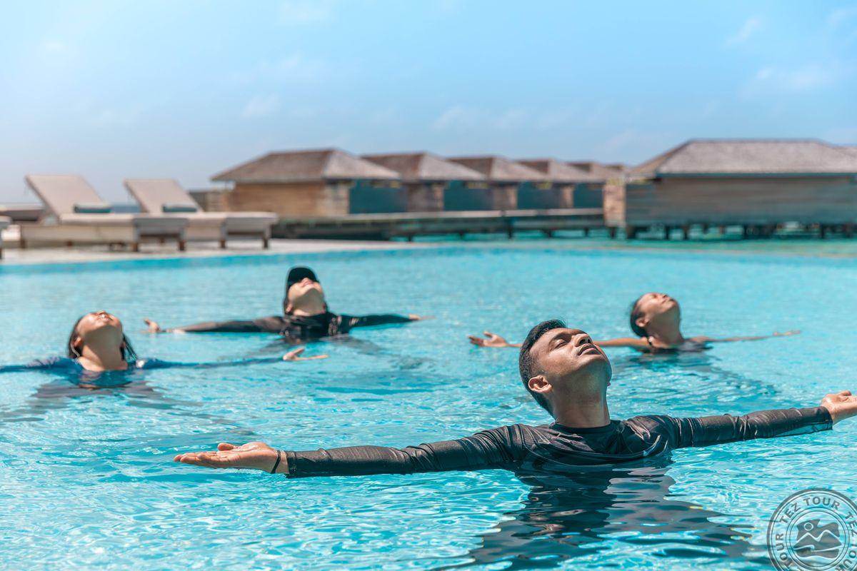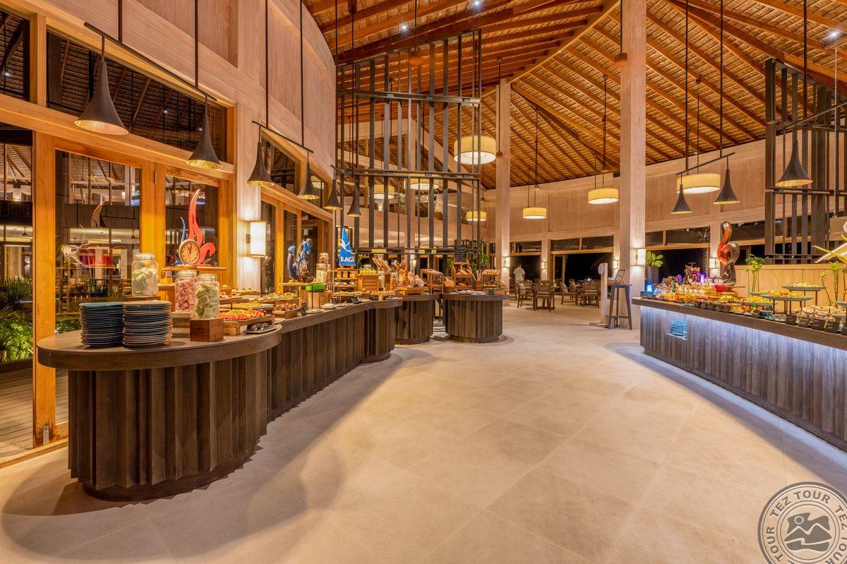 Территория:> рестораны: 3 (международная, азиатская кухня, ресторан здорового питания на территории спа-центра) бары: 3 винный погреб бассейны: 1 спа-центр (надводный спа -центр «Baani Spa») прачечная Wi-Fi есть лаунж (бутик)